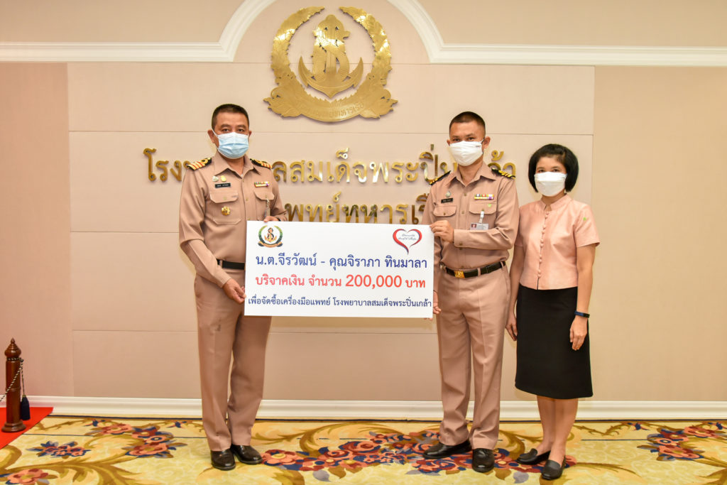 เมื่อวันที่ 13 ส.ค.64 น.อ.สมพร ระวิงทอง รอง ผอ.รพ.สมเด็จพระปิ่นเกล้า (ฝ่ายบริหาร) พร. รับมอบเงินบริจาค จำนวน 200,000 บาท จาก น.ต.จีรวัฒน์ – คุณจิราภา ทินมาลา เพื่อจัดซื้อเครื่องมือแพทย์ ณ ห้องรับรอง สำนักงานผู้อำนวยการ รพ.ฯ