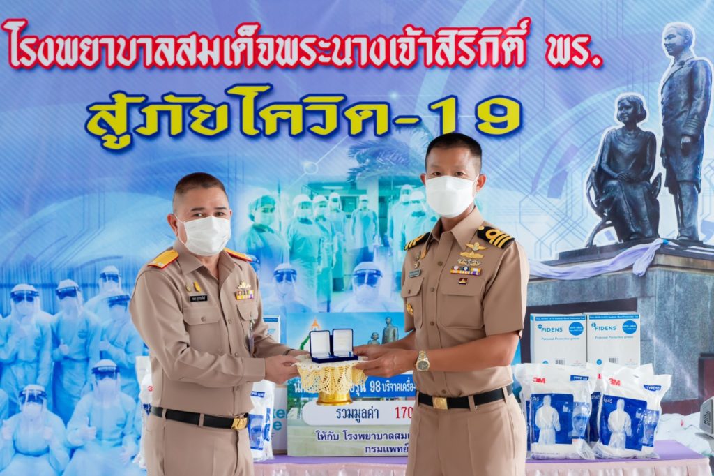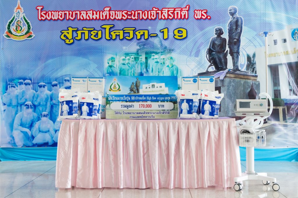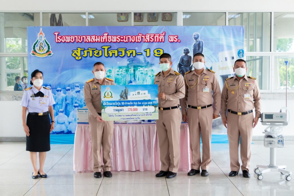 เมื่อวันที่ 17 ส.ค.64 พล.ร.ต.ชลธร สุวรรณกิตติ ผอ.รพ.สมเด็จพระนางเจ้าสิริกิติ์ พร. รับมอบเครื่อง High flow oxygen จำนวน 1 เครื่อง, ชุด PPE จำนวน 20 ชุด และชุด CPE จำนวน 300 ชุด จากผู้แทนนักเรียนนายเรือรุ่น 98 เพื่อนำไปใช้ในการดูแลรักษาผู้ป่วย COVID-19 ณ ห้องโถงชั้นล่างกองอำนวยการ / ข่าวบริจาค / By หน่วยขึ้นตรง จำนวนคนดู : 9