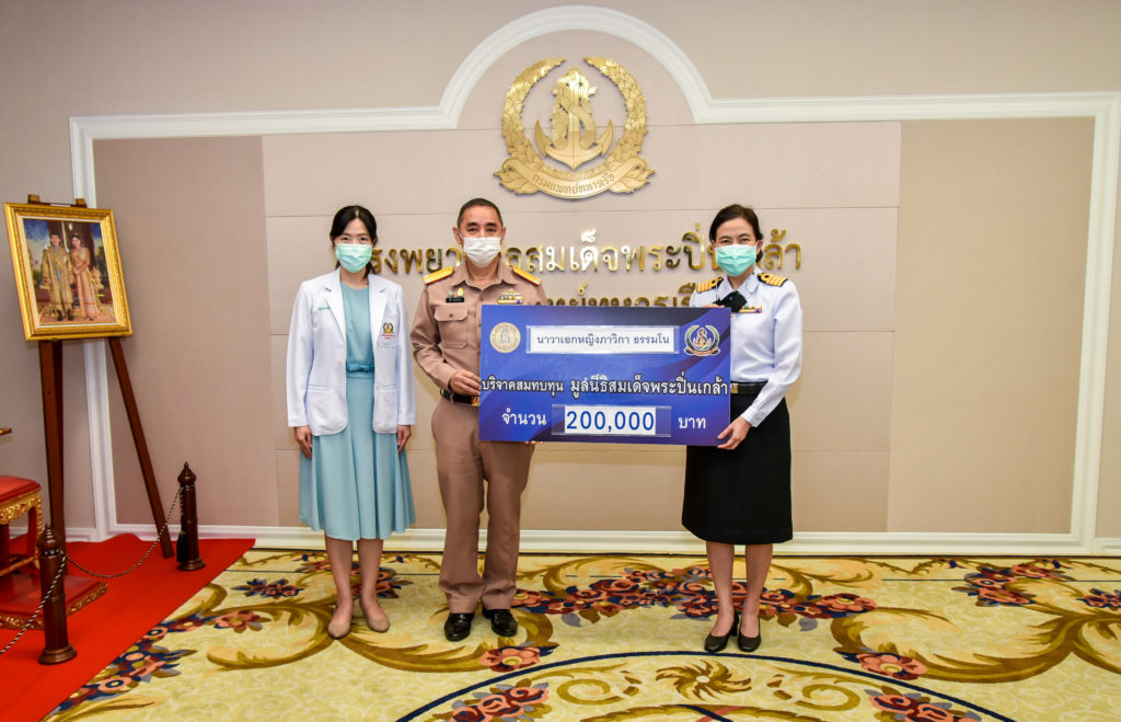 เมื่อวันที่ 18 ส.ค.64 พล.ร.ต.นิธิ พงศ์อนันต์ ผอ.รพ.สมเด็จพระปิ่นเกล้า พร. และ น.อ.หญิง พิมพ์สิริ ชมะนันทน์ กรรมการและผู้จัดการมูลนิธิสมเด็จพระปิ่นเกล้า รับมอบเงินบริจาคสมทบทุนมูลนิธิสมเด็จพระปิ่นเกล้า จำนวน 200,000 บาท จาก น.อ.หญิง ภาวิกา ธรรมโน เพื่อจัดซื้อเครื่องให้อากาศผสมออกซิเจนแรงดันสูง (High Flow) สำหรับผู้ป่วย COVID-19 ณ ห้องรับรอง สำนักงานผู้อำนวยการ รพ.ฯ / ข่าวบริจาค / By หน่วยขึ้นตรง จำนวนคนดู : 9