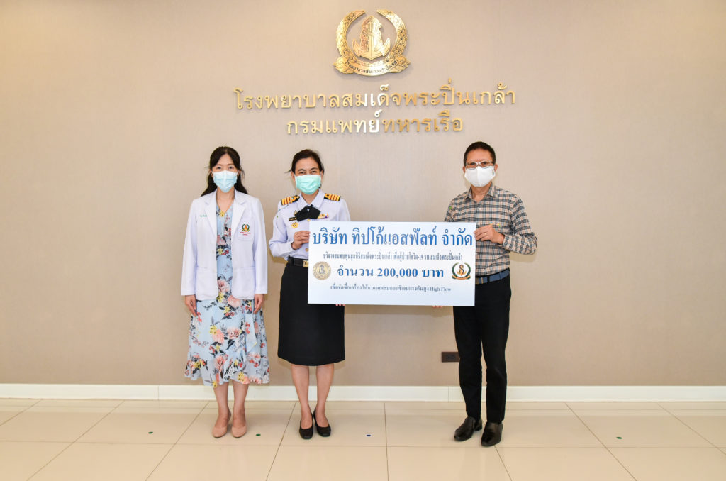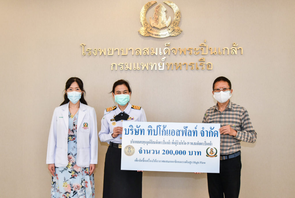 เมื่อวันที่ 26 ส.ค.64 พล.ร.ต.ธนรักษ์ เอี่ยวสานุรักษ์ ผู้แทน บริษัท ทิปโก้แอสฟัลท์ จำกัด มอบเงินบริจาคจำนวน 200,000 บาท ให้กับมูลนิธิสมเด็จพระปิ่นเกล้า เพื่อสมทบทุนจัดซื้อเครื่องให้อากาศผสมออกซิเจนแรงดันสูง High Flow ให้ผู้ป่วย COVID-19 การนี้ น.อ.หญิง ภาวิกา ธรรมโน รอง ผอ.รพ.สมเด็จพระปิ่นเกล้า (ฝ่ายศึกษาอบรมและวิจัย/กรรมการและผู้ช่วยเหรัญญิกมูลนิธิสมเด็จพระปิ่นเกล้า) พร. และ น.อ.หญิง พิมพ์สิริ ชมะนันทน์ กรรมการและผู้จัดการมูลนิธิฯ เป็นผู้รับมอบ ณ ห้องรับรองพิเศษ ชั้น 2 อาคารผู้ป่วยนอก รพ.สมเด็จพระปิ่นเกล้า พร. / ข่าวบริจาค / By หน่วยขึ้นตรง จำนวนคนดู : 12