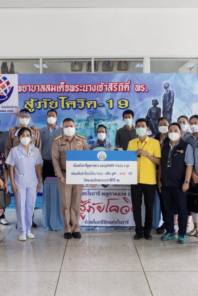 เมื่อวันที่ 9 ก.ย.64 พล.ร.ต.ชลธร สุวรรณกิตติ ผอ.รพ.สมเด็จพระนางเจ้าสิริกิติ์ พร. รับมอบชุด PAPR จำนวน 7 ชุด จาก สโมสรโรตารี่พลูตาหลวง, สโมสรโรตารี่สัตหีบ, สโมสรโรตารี่มิตรภาพ และกลุ่มละอ่อนกอล์ฟร่วมกับทีจี ออโต้คาร์ ให้กับมูลนิธิโรงพยาบาลสมเด็จพระนางเจ้าสิริกิติ์ กองทัพเรือ ในพระบรมราชินูปถัมภ์ เพื่อใช้สำหรับดูแลผู้ป่วย COVID-19 ณ ห้องโถงชั้นล่าง กองอำนวยการ รพ.สมเด็จพระนางเจ้าสิริกิติ์ พร. / ข่าวบริจาค / By หน่วยขึ้นตรง จำนวนคนดู : 9
