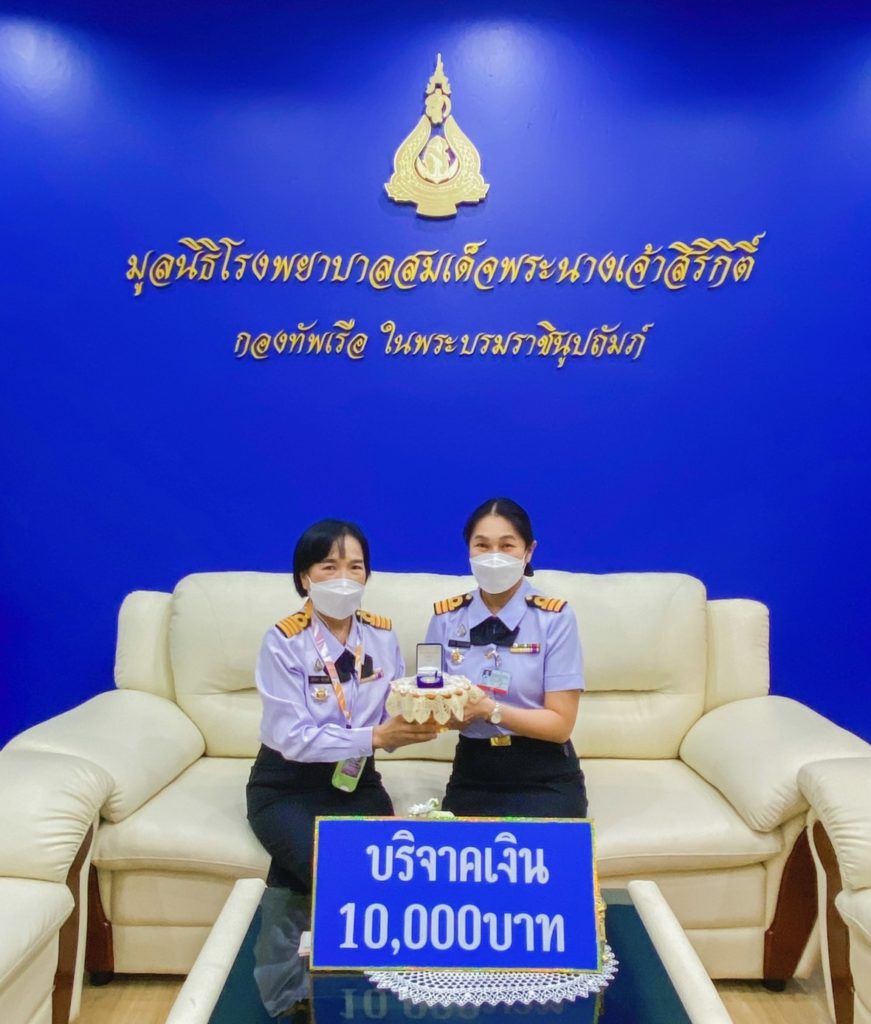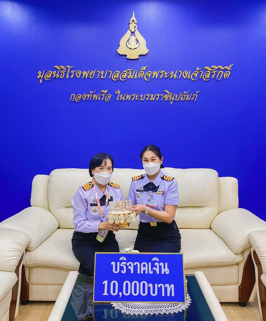 เมื่อวันที่ 29 ก.ย.64 น.อ.หญิง สุชาดา ขำวาที หน.สนง.มูลนิธิโรงพยาบาลสมเด็จพระนางเจ้าสิริกิติ์ กองทัพเรือ ในพระบรมราชินูปถัมภ์รับมอบเงินบริจาคจำนวน 10,000 บาท จาก น.ท.หญิง ธรรมิกา ไพโรจน์สรคุปต์ ผู้แทนนายสาโรช ทองระอา เพื่อสมทบทุนสร้างห้องผ่าตัดแรงดันลบให้ห้องผ่าตัดสูตินรีเวชกรรม ณ สนง.มูลนิธิฯ รพ.สมเด็จพระนางเจ้าสิริกิติ์ พร.