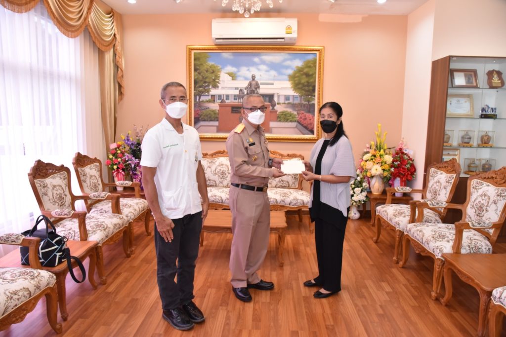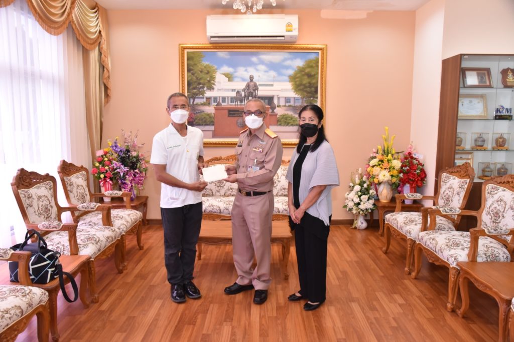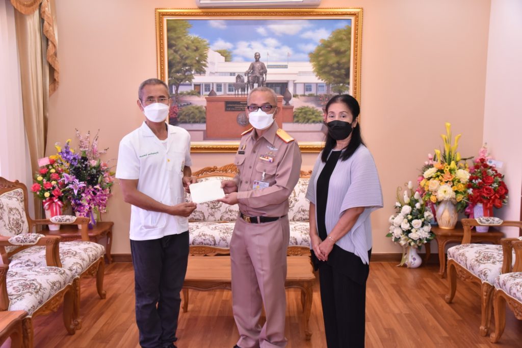 เมื่อ ๑๑ ต.ค.๖๔ พลเรือตรี ขจิตร์ อุษณีษ์สวัสดิ์ชัย ผู้อำนวยการโรงพยาบาลอาภากรเกียรติวงศ์ ฐานทัพเรือสัตหีบ รับมอบเงินบริจาคจำนวน ๓๐,๐๐๐ บาท จากคุณวิชนี นันทกิจ เพื่อสนับสนุนโครงการดูแลผู้ป่วยแบบประคับประคองฯ ณ ห้องรับรองอาภากรเกียรติวงศ์ โรงพยาบาลอาภากรเกียรติวงศ์ ฐานทัพเรือสัตหีบ