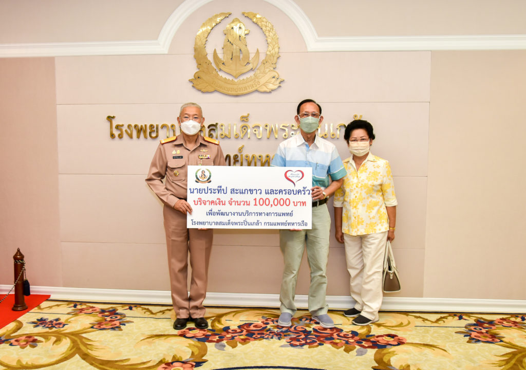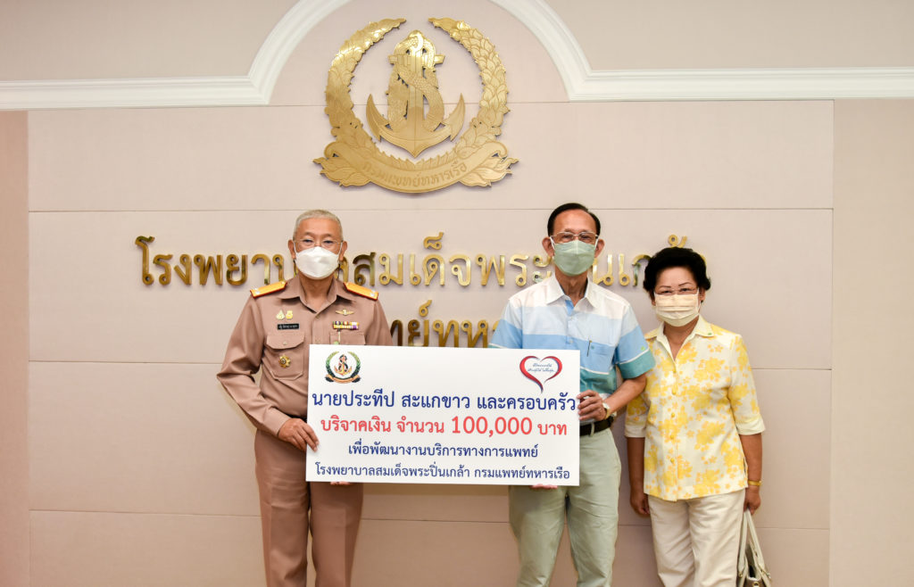 เมื่อ ๒๗ ต.ค.๖๔ พลเรือตรี ณัฐ อิศรางกูร ณ อยุธยา ผู้อำนวยการโรงพยาบาลสมเด็จพระปิ่นเกล้า กรมแพทย์ทหารเรือ รับมอบเงินบริจาค จำนวน ๑๐๐,๐๐๐ บาท จากคุณประทีป สะแกขาว และครอบครัว เพื่อพัฒนางานบริการทางการแพทย์ โรงพยาบาลสมเด็จพระปิ่นเกล้า ณ ห้องรับรอง สำนักงานผู้อำนวยการ รพ.ฯ