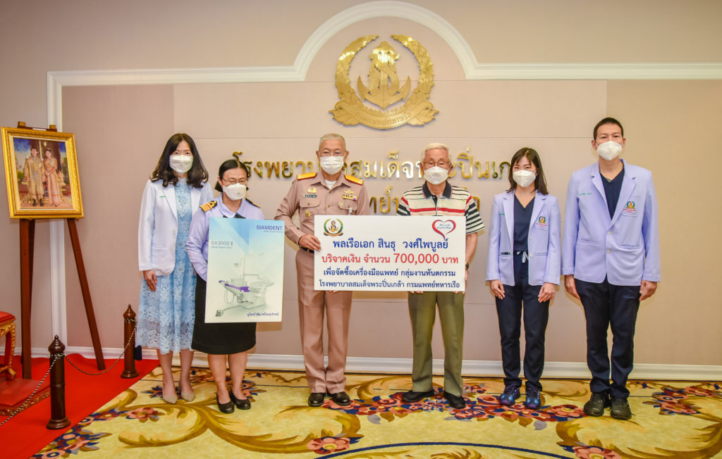 พลเรือตรี ณัฐ อิศรางกูร ณ อยุธยา ผู้อำนวยการโรงพยาบาลสมเด็จพระปิ่นเกล้า กรมแพทย์ทหารเรือ รับมอบเงินบริจาค จำนวน ๗๐๐,๐๐๐ บาท จากพลเรือเอก สินธุ วงศ์ไพบูลย์ เพื่อจัดซื้อเครื่องมือแพทย์ กลุ่มงานทันตกรรม โรงพยาบาลสมเด็จพระปิ่นเกล้า ณ ห้องรับรอง สำนักงานผู้อำนวยการ รพ.ฯ เมื่อวันที่ ๓ พฤศจิกายน ๒๕๖๔