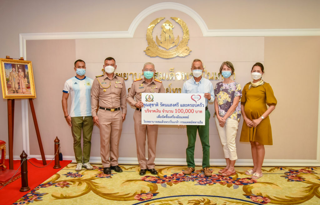 พลเรือตรี ณัฐ อิศรางกูร ณ อยุธยา ผู้อำนวยการโรงพยาบาลสมเด็จพระปิ่นเกล้า กรมแพทย์ทหารเรือ รับมอบเงินบริจาค จำนวน ๑๐๐,๐๐๐ บาท จากคุณสุชาติ รัตนแสงศรี และครอบครัว เพื่อจัดซื้อเครื่องมือแพทย์ มอบให้โรงพยาบาลสมเด็จพระปิ่นเกล้า ณ ห้องรับรอง สำนักงานผู้อำนวยการ รพ.ฯ เมื่อวันที่ ๘ พฤศจิกายน ๒๕๖๔