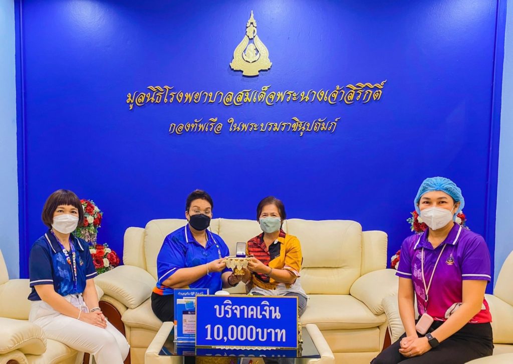 นาวาเอกหญิง สุธาทิพย์ มั่งมี มอบเงินบริจาคจำนวน ๑๐,๐๐๐ บาท ให้มูลนิธิโรงพยาบาลสมเด็จพระนางเจ้าสิริกิติ์ กองทัพเรือ ในพระบรมราชินูปถัมภ์ โดยมีนาวาเอกหญิง กมลลักษณ์ โสธนะ รองหัวหน้าสำนักงานมูลนิธิ โรงพยาบาลสมเด็จพระนางเจ้าสิริกิติ์ กองทัพเรือ ในพระบรมราชินูปถัมภ์ เป็นตัวแทนรับมอบ เพื่อใช้สำหรับปรับปรุงห้องผ่าตัดแรงดันลบให้ห้องผ่าตัดสูตินรีเวชกรรม ณ.สำนักงานมูลนิธิฯ เมื่อวันจันทร์ที่ ๘ พฤศจิกายน ๒๕๖๔