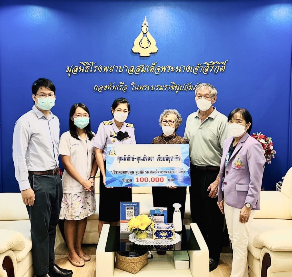เมื่อ ๒๒ พ.ย.๖๔ นาวาเอกหญิง สุชาดา ขำวาที หัวหน้าสำนักงานมูลนิธิ โรงพยาบาลสมเด็จพระนางเจ้าสิริกิติ์ กองทัพเรือ ในพระบรมราชินูปถัมภ์ รับมอบเงินบริจาคจำนวน ๑๐๐,๐๐๐ บาท จากคุณ พิทักษ์ – คุณอัจฉรา เจียมพิรุฬห์กิจ ให้มูลนิธิโรงพยาบาลสมเด็จพระนางเจ้าสิริกิติ์ กองทัพเรือ ในพระบรมราชินูปถัมภ์ เพื่อจัดซื้ออุปกรณ์ทางการแพทย์ให้กลุ่มงานทันตกรรม ณ สำนักงานมูลนิธิฯ