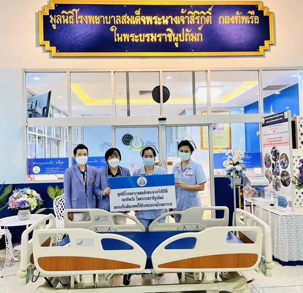 เมื่อ ๒๒ พ.ย.๖๔ มูลนิธิโรงพยาบาลสมเด็จพระนางเจ้าสิริกิติ์ กองทัพเรือ ในพระบรมราชินูปถัมภ์ มอบเตียงไฟฟ้า จำนวน ๑ เตียง ให้หอผู้ป่วยสูตินรีเวชกรรม โดยมีนาวาเอกหญิง สุชาดา ขำวาที หัวหน้าสำนักงานมูลนิธิ โรงพยาบาลสมเด็จพระนางเจ้าสิริกิติ์ กองทัพเรือ ในพระบรมราชินูปถัมภ์ เป็นตัวแทนมอบ และนาวาตรีหญิง นฤมล ศรีสมุทร หัวหน้าหอผู้ป่วยสูตินรีเวชกรรม เป็นผู้รับมอบ ณ สำนักงานมูลนิธิฯ