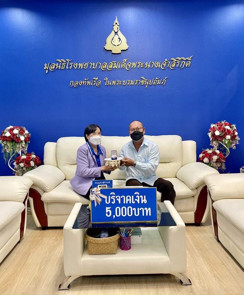 เมื่อ ๒๓ พ.ย.๖๔ นาวาเอกหญิง สุชาดา ขำวาที หัวหน้าสำนักงานมูลนิธิ โรงพยาบาลสมเด็จพระนางเจ้าสิริกิติ์ กองทัพเรือ ในพระบรมราชินูปถัมภ์ รับมอบเงินบริจาคจำนวน ๕,๐๐๐ บาท จากคุณกิตติ์พิพัฒน์ เจริญผล อุทิศให้คุณแม่ นงเยาว์ เจริญผล คุณพ่อ ธูป เจริญผลให้มูลนิธิโรงพยาบาลสมเด็จพระนางเจ้าสิริกิติ์ กองทัพเรือ ในพระบรมราชินูปถัมภ์ เพื่อสมทบทุนซื้อเครื่องมือแพทย์ กลุ่มงานศัลยกรรม ณ สำนักงานมูลนิธิฯ / ข่าวบริจาค / By หน่วยขึ้นตรง จำนวนคนดู : 11