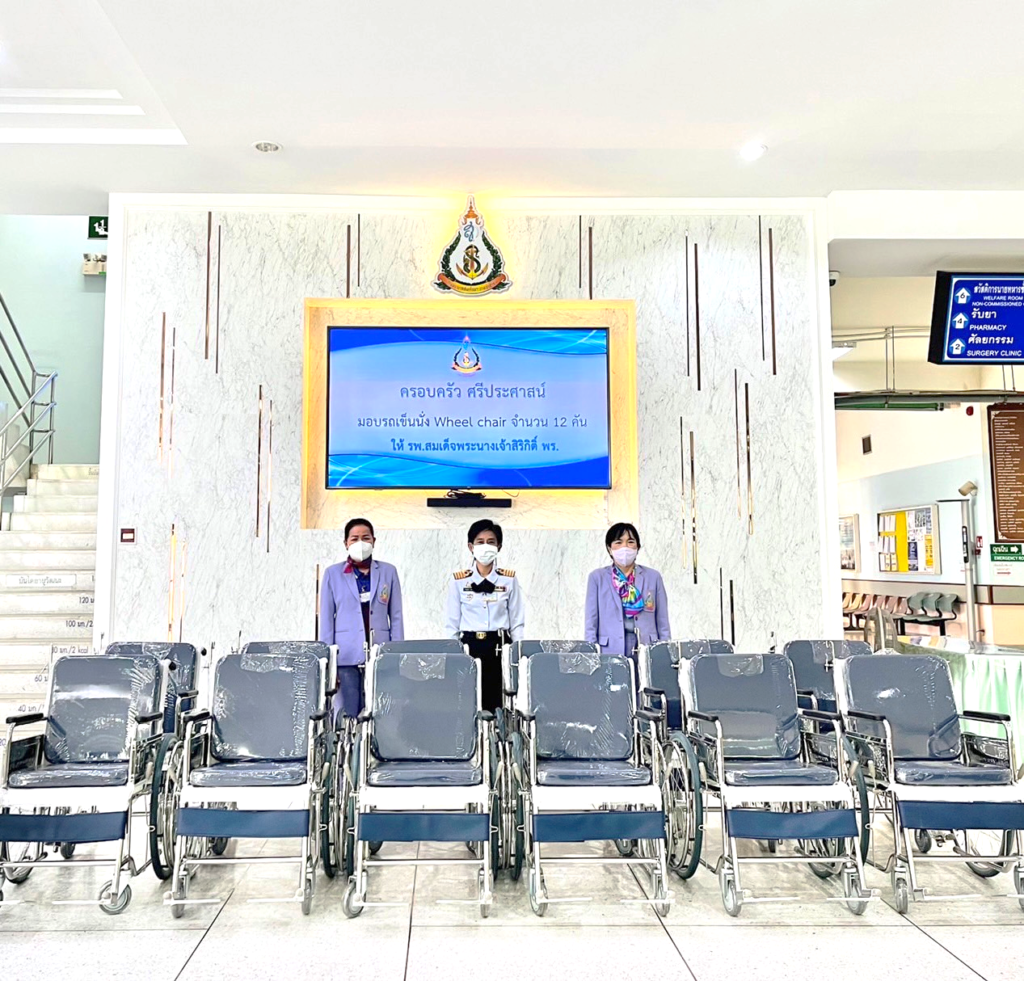 เมื่อ ๒๓ ธ.ค.๖๔ ครอบครัว ศรีประศาสน์ มอบเงินบริจาคจำนวน๑๓๘,๐๐๐ บาท ให้มูลนิธิ รพ.สมเด็จพระนางเจ้าสิริกิติ์ พร. ในพระบรมราชินูปถัมภ์ เพื่อจัดซื้อรถเข็นนั่งWHEEL CHAIR จำนวน ๑๒ คัน มอบให้ รพ.สมเด็จพระนางเจ้าสิริกิติ์ พร. โดยมี น.อ.หญิง สุชาดา ขำวาที เลขามูลนิธิ และหน.สน.มูลนิธิ รพ.สมเด็จพระนางเจ้าสิริกิติ์ พร. ในพระบรมราชินูปถัมภ์ เป็นตัวแทนมอบ และ น.อ.หญิง กาญจนา ทองเรือง หน.กลุ่มงานสนับสนุนสายแพทย์ 2 เป็นผู้รับมอบ ณ ห้องโถงอาคารผู้ป่วยนอก / ข่าวบริจาค / By ข่าวผู้บังคับบัญชา จำนวนคนดู : 8