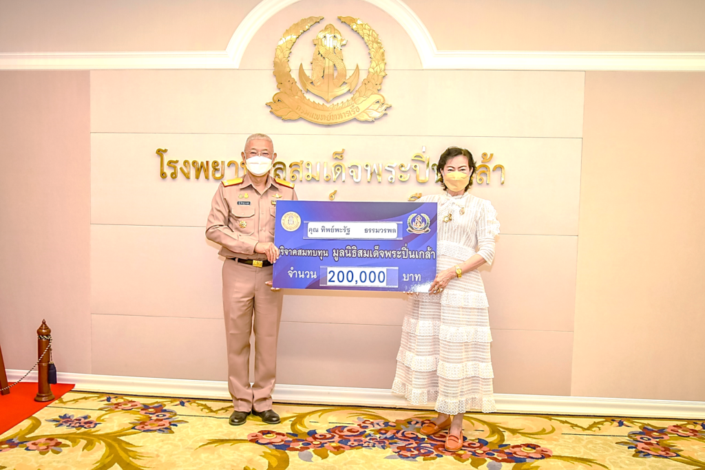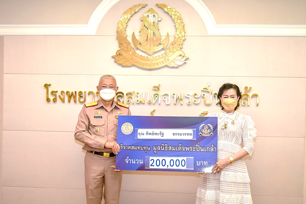 เมื่อ ๒๖ ม.ค.๖๕ พล.ร.ต.ณัฐ อิศรางกูร ณ อยุธยา ผอ.รพ.สมเด็จพระปิ่นเกล้า กรมแพทย์ทหารเรือ รับมอบเงินบริจาคจำนวน ๒๐๐,๐๐๐ บาท จากคุณทิพย์พะรัฐ ธรรมวรพล สมทบทุนมูลนิธิสมเด็จพระปิ่นเกล้า เพื่ออาคารผู้ป่วยใน ๑๔ ชั้น โรงพยาบาลสมเด็จพระปิ่นเกล้า ณ ห้องรับรอง สำนักงานผู้อำนวยการ รพ.ฯ