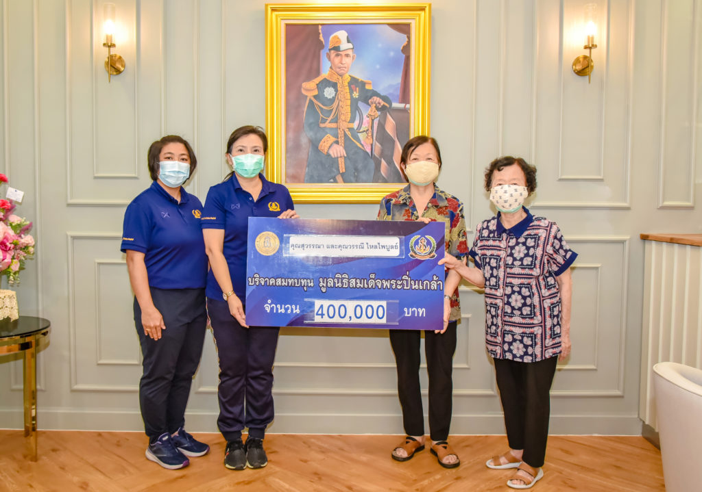นาวาโทหญิง เย็นฤดี เสตะกสิกร หน.สำนักงานมูลนิธิสมเด็จพระปิ่นเกล้า และนาวาตรีหญิง สรวงสุดา แนวจิตร รอง หน.สำนักงานมูลนิธิฯ รับมอบเงินบริจาคจำนวน 400,000 บาท จากคุณสุวรรณา – คุณวรรณี ไหลไพบูลย์ สมทบทุนมูลนิธิสมเด็จพระปิ่นเกล้า เพื่ออาคารผู้ป่วยใน 14 ชั้น โรงพยาบาลสมเด็จพระปิ่นเกล้า ณ สำนักงานมูลนิธิสมเด็จพระปิ่นเกล้า ชั้น 1 อาคารพิเคราะห์และบำบัดโรค รพ.ฯ เมื่อวันที่ 30 มีนาคม 2565