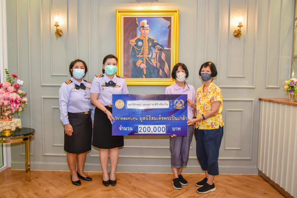นาวาโทหญิง เย็นฤดี เสตะกสิกร หน.สำนักงานมูลนิธิสมเด็จพระปิ่นเกล้า และนาวาตรีหญิง สรวงสุดา แนวจิตร รอง หน.สำนักงานมูลนิธิฯ รับมอบเงินบริจาคจำนวน 200,000 บาท จากคุณวิลักษณา – คุณวิลาสินี ศรีมาวิน เพื่อสมทบทุนมูลนิธิสมเด็จพระปิ่นเกล้า ณ สำนักงานมูลนิธิสมเด็จพระปิ่นเกล้า ชั้น 1 อาคารพิคราะห์และบำบัดโรค รพ.ฯ เมื่อวันที่ 31 มีนาคม 2565