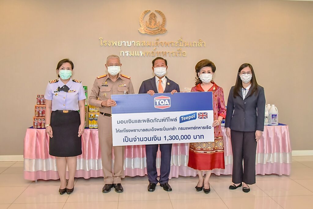 เมื่อ ๑๙ เม.ย.๖๕ พล.ร.ต.ณัฐ อิศรางกูร ณ อยุธยา ผอ.รพ.สมเด็จพระปิ่นเกล้า กรมแพทย์ทหารเรือ รับมอบเงินบริจาค และผลิตภัณฑ์ทีโพล รวมเป็นจำนวนเงิน ๑,๓๐๐,๐๐๐ บาท จากบริษัท ทีโอเอ เพ้นท์ (ประเทศไทย) จำกัด (มหาชน) มอบให้โรงพยาบาลสมเด็จพระปิ่นเกล้า พร. โดยมี คุณประจักษ์ – คุณละออ ตั้งคารวคุณ ประธาน – รองประธานกรรมการบริษัทฯ เป็นผู้มอบ ณ ห้องรับรองพิเศษ ชั้น ๒ อาคารผู้ป่วยนอก รพ.ฯ