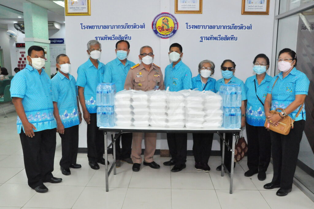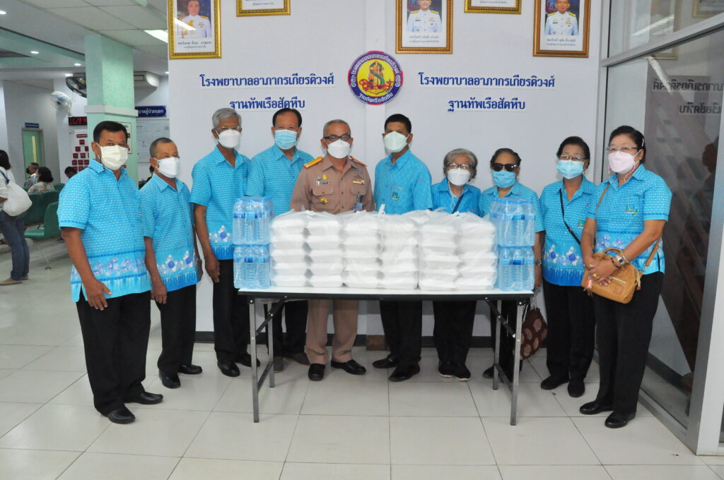 เมื่อ ๑๐ พ.ค.๖๕ พล.ร.ต.ขจิตร์ อุษณีษ์สวัสดิ์ชัย ผอ.รพ.อาภากรเกียรติวงศ์ ฐานทัพเรือสัตหีบ รับมอบอาหารกล่อง จำนวน ๖๐ กล่องและน้ำดื่ม จำนวน ๖ แพ็ค จากชมรมผู้สูงอายุ รพ.สมเด็จพระนางเจ้าสิริกิติ์ พร. เพื่อร่วมสนับสนุนและเป็นขวัญกำลังใจให้กับแพทย์ พยาบาลและบุคลากรทางการแพทย์ รพ.ฯ ณ ห้องตรวจโรคผู้ป่วยนอก