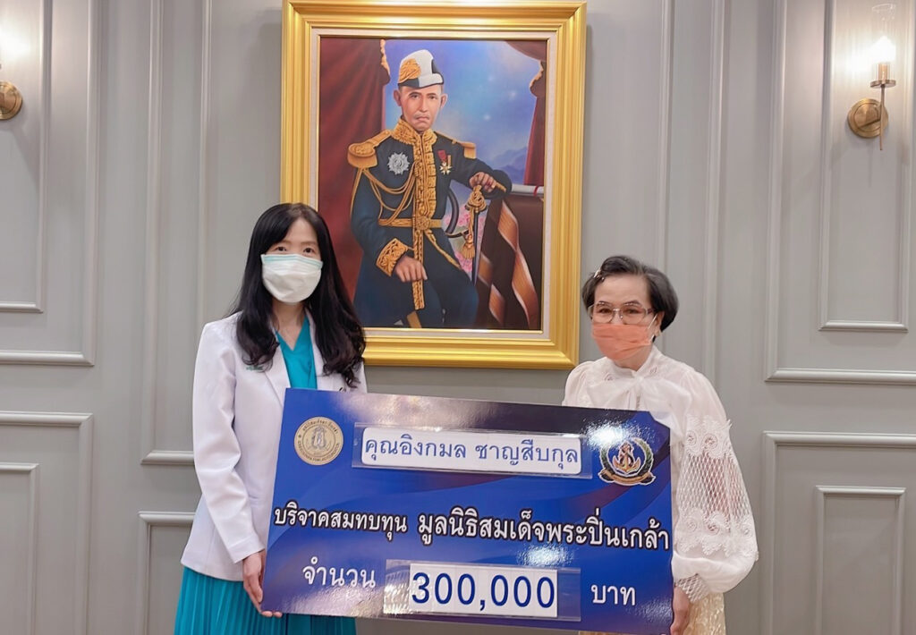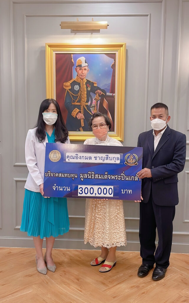 เมื่อ ๑ มิ.ย.๖๕ น.อ.หญิง พิมพ์สิริ ชมะนันทน์ กรรมการและผู้จัดการมูลนิธิสมเด็จพระปิ่นเกล้า รับมอบเงินบริจาคจำนวน ๓๐๐,๐๐๐ บาท จากคุณอิงกมล ชาญสืบกุล เพื่อสมทบทุนมูลนิธิสมเด็จพระปิ่นเกล้า ณ สำนักงานมูลนิธิสมเด็จพระปิ่นเกล้า ชั้น ๑ อาคารพิเคราะห์และบำบัดโรค รพ.ฯ
