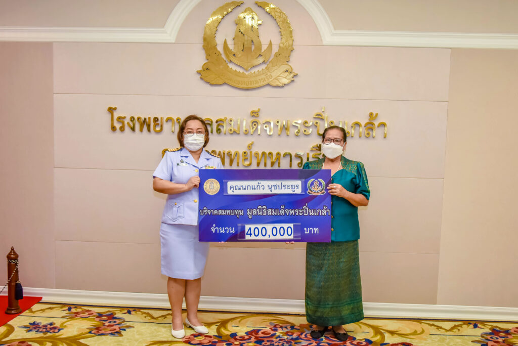 เมื่อ ๒ มิ.ย.๖ค น.อ.หญิง ปิติยา ปิยะนุช รอง.ผอ.รพ.สมเด็จพระปิ่นเกล้า กรมแพทย์ทหารเรือ ฝ่ายบริการสุขภาพ รับมอบเงินบริจาคจำนวน ๔๐๐,๐๐๐ บาท จาก คุณนกแก้ว นุชประยูร เพื่อสมทบทุนมูลนิธิสมเด็จพระปิ่นเกล้า ณ ห้องรับรอง สำนักงานผู้อำนวยการ