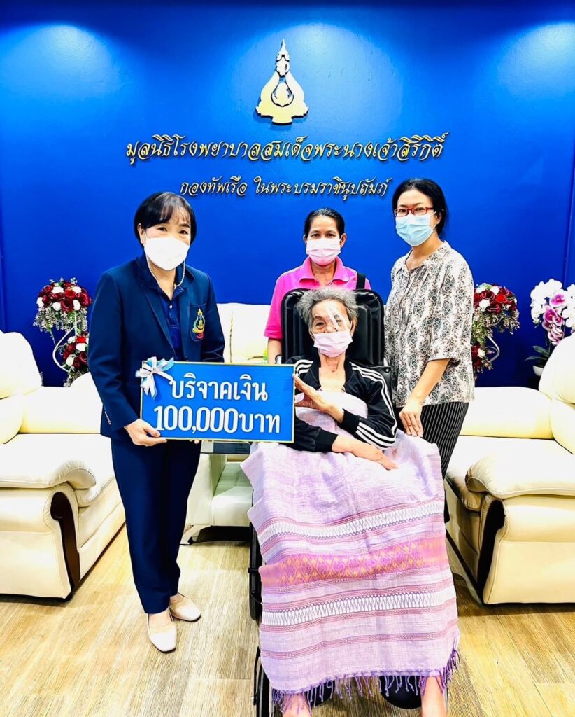 เมื่อ ๒๘ พ.ย.๖๕ พลเรือตรีหญิง สุชาดา ขำวาที เลขามูลนิธิ และหัวหน้าสำนักงานมูลนิธิ โรงพยาบาลสมเด็จพระนางเจ้าสิริกิติ์ กองทัพเรือ ในพระบรมราชินูปถัมภ์ รับมอบ เงินบริจาคจำนวน 100,000 บาท จาก นางเสียน วงษ์สูงและครอบครัว มอบให้มูลนิธิโรงพยาบาลสมเด็จพระนางเจ้าสิริกิติ์ กองทัพเรือ ในพระบรมราชินูปถัมภ์