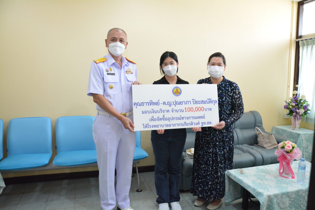 เมื่อ ๒๗ ธ.ค.๖๕ คุณธารทิพย์ – ด.ญ.ปุณยาภา  ปิยะสมบัติกุล มอบเงินบริจาคจำนวน ๑๐๐,๐๐๐ บาท เพื่อจัดซื้ออุปกรณ์ทางการแพทย์ให้ รพ.อาภากรเกียรติวงศ์ ฐท.สส. โดยมี พล.ร.ต.ประทีป  ตังติสานนท์ ผอ.รพ.อาภากรเกียรติวงศ์ ฐท.สส. เป็นผู้รับมอบ ณ ห้องรับรองแผนกตรวจสุขภาพ รพ.อาภากรเกียรติวงศ์ ฐท.สส.
