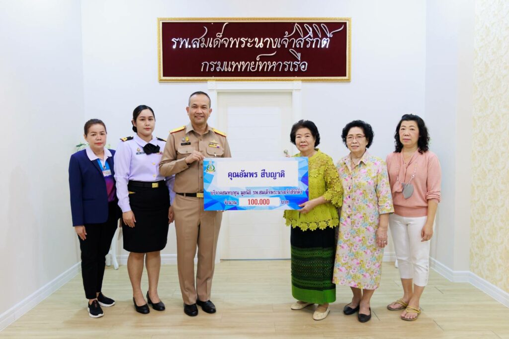 เมื่อ ๑๖ ม.ค.๖๖ คุณอัมพร สืบญาติ มอบเงินบริจาคจำนวน ๑๐๐,๐๐๐ บาท ให้มูลนิธิโรงพยาบาลสมเด็จพระนางเจ้าสิริกิติ์ กองทัพเรือ ในพระบรมราชินูปถัมภ์ โดยมี พล.ร.ต.กิตตินันท์ งามศิลป์ ผอ.รพ.สมเด็จพระนางเจ้าสิริกิติ์ พร. เป็นผู้รับมอบ ณ ห้อง ๑๙ ปี ชั้น ๒ อาคารอำนวยการ รพ.สมเด็จพระนางเจ้าสิริกิติ์ พร.