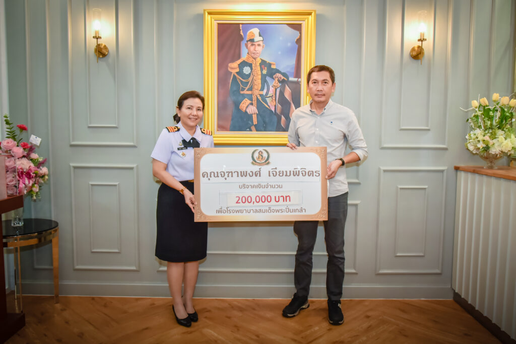 เมื่อ ๑๓ มิ.ย.๖๖ คุณจุฑาพงศ์ เจียมพิจิตร มอบเงินบริจาคจำนวน ๒๐๐,๐๐๐ บาท เพื่อพัฒนาบริการทางการแพทย์ รพ.สมเด็จพระปิ่นเกล้า พร. โดยมี น.ท.หญิง เย็นฤดี เสตะกสิกร รอง ผอ.ศูนย์รับบริจาค รพ.สมเด็จพระปิ่นเกล้า พร. เป็นผู้รับมอบ ณ สนง.มูลนิธิสมเด็จพระปิ่นเกล้า อาคารพิเคราะห์และบำบัดโรค ชั้น ๑ รพ.สมเด็จพระปิ่นเกล้า พร.