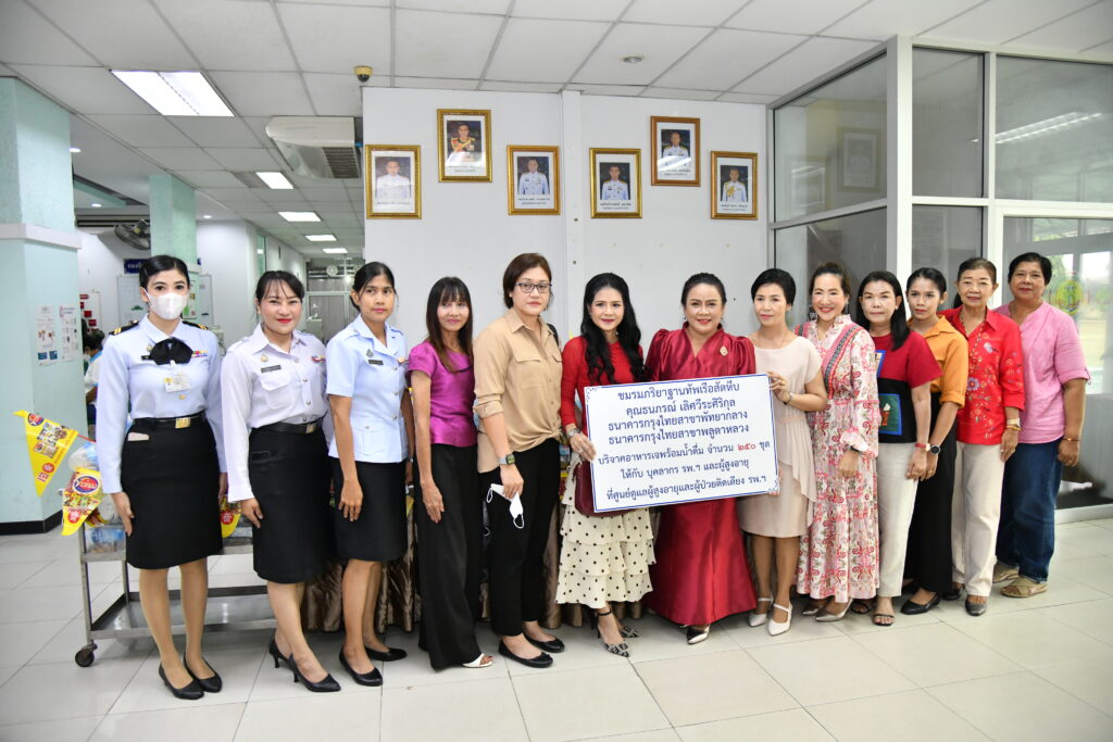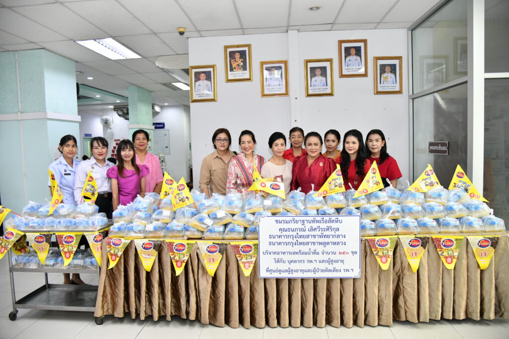 เมื่อ ๑๙ ต.ค.๖๖ ชมรมภริยาฐานทัพเรือสัตหีบ, คุณธนภรณ์ เลิศวีระศิริกุล, ธนาคารกรุงไทยสาขาพัทยากลางและธนาคารกรุงไทยสาขาพลูตาหลวง บริจาคอาหารเจพร้อมน้ำดื่ม จำนวน ๒๕๐ ชุด ให้แก่ บุคลากร รพ.ฯ และผู้สูงอายุและผู้ป่วยติดเตียง ของศูนย์ดูแลผู้สูงอายุและผู้ป่วยติดเตียง ณ รพ.อาภากรเกียรติวงศ์ ฐท.สส.