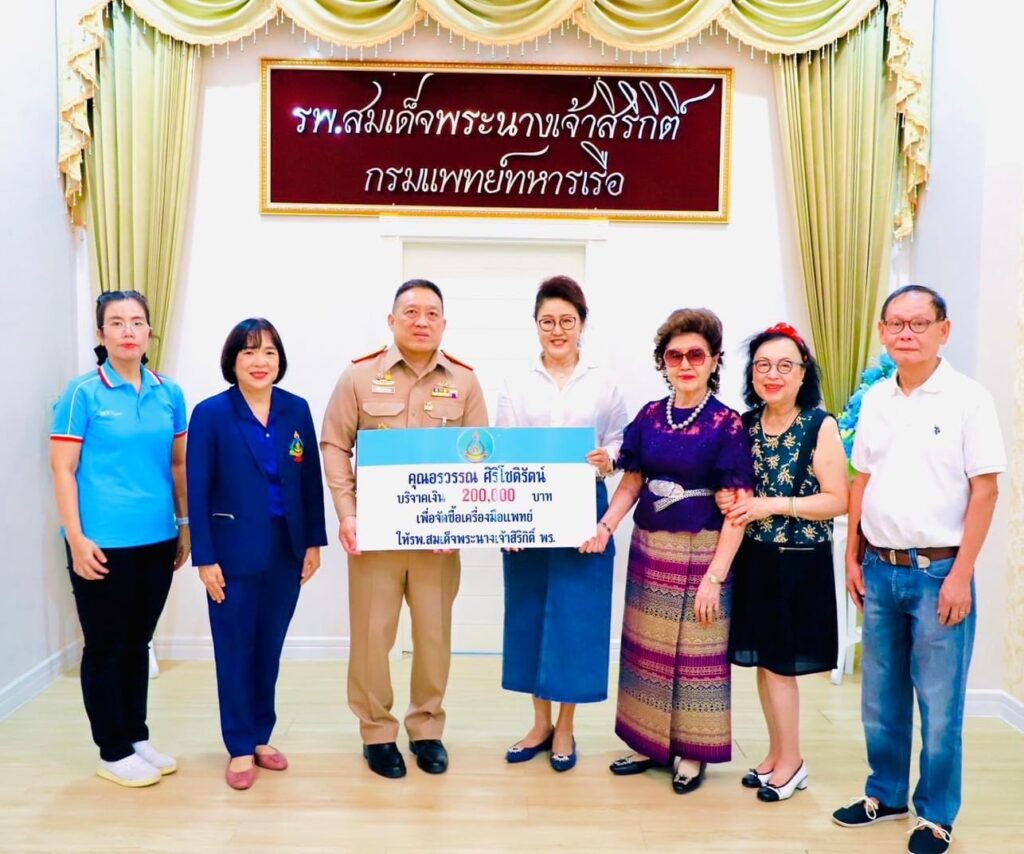 เมื่อ ๑๒ ม.ค.๖๗ คุณอรวรรณ ศิริโชติรัตน์ บริจาคเงินจำนวน ๒๐๐,๐๐๐ บาท เพื่อจัดซื้อเครื่องมือแพทย์ให้ รพ.สมเด็จพระนางเจ้าสิริกิติ์ พร. โดยมี พล.ร.ต.ดนัย ปานแดง ผอ.รพ.สมเด็จพระนางเจ้าสิริกิติ์ พร. เป็นผู้รับมอบ ณ ห้อง ๑๙ ปี อาคารอำนวยการ ชั้น ๒ รพ.สมเด็จพระนางเจ้าสิริกิติ์ พร.