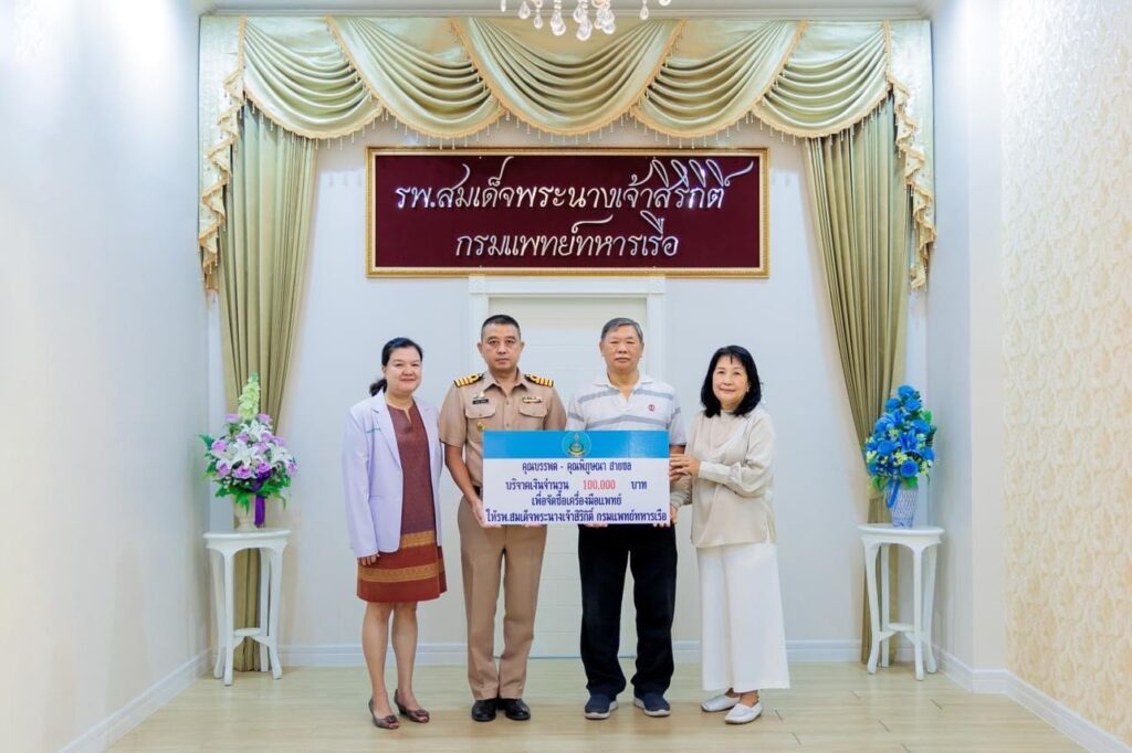 เมื่อ ๓๐ ม.ค.๖๗ คุณบรรพต – คุณพิภูษณา สายชล บริจาคเงินจำนวน ๑๐๐,๐๐๐ บาท เพื่อจัดซื้อเครื่องมือแพทย์ให้ รพ.สมเด็จพระนางเจ้าสิริกิติ์ พร. โดยมี น.อ.สมพร ระวิงทอง รอง ผอ.รพ.สมเด็จพระนางเจ้าสิริกิติ์ พร. เป็นผู้รับมอบ ณ ห้อง ๑๙ ปี อาคารอำนวยการ ชั้น ๒ รพ.สมเด็จพระนางเจ้าสิริกิติ์ พร.