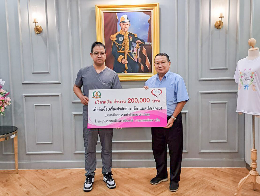 เมื่อ ๕ มิ.ย.๖๗ พล.ร.ท.ประยูร – คุณสิริกร ภู่เทียน มอบเงินบริจาคจำนวน ๒๐๐,๐๐๐ บาท เพื่อสมทบทุนจัดซื้อชุดเครื่องมือผ่าตัดหัวใจส่องกล้องแผลเล็ก (MIS Set) ให้แผนกศัลยกรรมหัวใจและทรวงอก รพ.สมเด็จพระปิ่นเกล้า พร. โดยมี น.ท.วรพจน์ ชมศิริ ศัลยแพทย์หัวใจและทรวงอก รพ.สมเด็จพระปิ่นเกล้า พร. เป็นผู้รับมอบ ณ สนง.มูลนิธิสมเด็จพระปิ่นเกล้า อาคารพิเคราะห์และบำบัดโรค ชั้น ๑ รพ.สมเด็จพระปิ่นเกล้า พร. / ข่าวบริจาค / By ข่าวผู้บังคับบัญชา จำนวนคนดู : 8