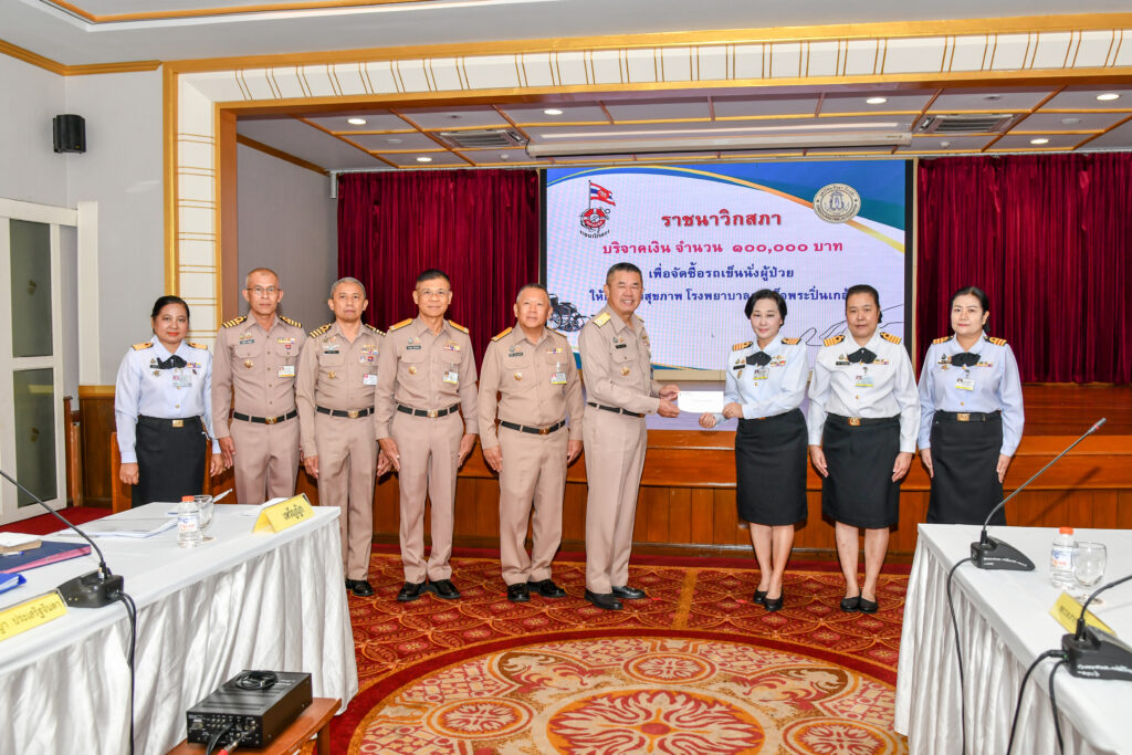 เมื่อ ๑๖ ก.ค.๖๗ พล.ร.ท.วสันต์ สาทรกิจ นายกกรรมการราชนาวิกสภาและเจ้ากรมยุทธศึกษาทหารเรือ พร้อมคณะ มอบเงินบริจาคจำนวน ๑๐๐,๐๐๐ บาท สมทบทุนมูลนิธิสมเด็จพระปิ่นเกล้า เพื่อจัดซื้อรถเข็นนั่งผู้ป่วยมอบให้ศูนย์สุขภาพ รพ.สมเด็จพระปิ่นเกล้า พร. โดยมี น.อ.หญิง ผุสดี หิรัญอัศว์ รอง ผอ.รพ.สมเด็จพระปิ่นเกล้า พร. ฝ่ายการแพทย์เชิงรุก และ รรก.ผอ.ศูนย์สุขภาพ รพ.สมเด็จพระปิ่นเกล้า พร. เป็นผู้รับมอบ ณ ห้องวุฒิไชยเฉลิมลาภ อาคารราชนาวิกสภา ชั้น ๒ กรุงเทพฯ / ข่าวบริจาค / By ข่าวผู้บังคับบัญชา จำนวนคนดู : 6