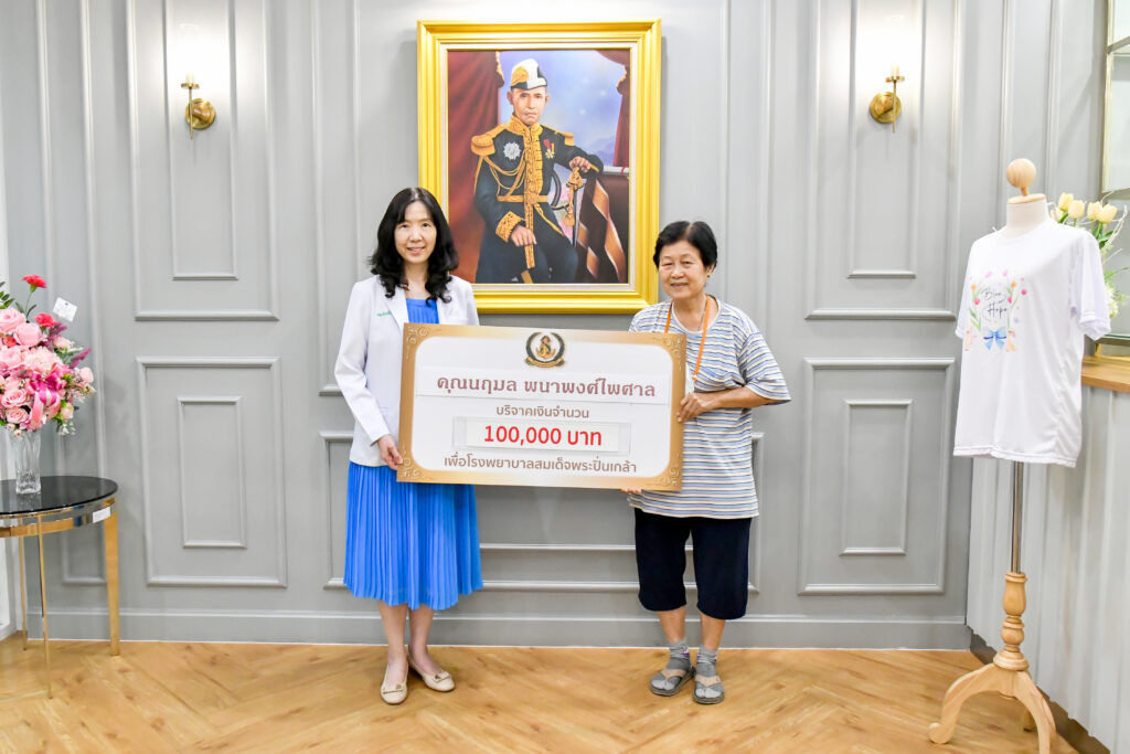 เมื่อ ๒ ส.ค.๖๗ คุณนฤมล พนาพงศ์ไพศาล มอบเงินบริจาคจำนวน ๑๐๐,๐๐๐ บาท สมทบทุนโครงการทอดผ้าป่ามหากุศล เพื่อจัดซื้อเครื่องมือแพทย์ รพ.สมเด็จพระปิ่นเกล้า พร. โดยมี น.อ.หญิง พิมพ์สิริ ชมะนันทน์ ผอ.ศูนย์รับบริจาค รพ.สมเด็จพระปิ่นเกล้า พร. เป็นผู้รับมอบ ณ สนง.มูลนิธิสมเด็จพระปิ่นเกล้า อาคารพิเคราะห์และบำบัดโรค ชั้น ๑ รพ.สมเด็จพระปิ่นเกล้า พร.