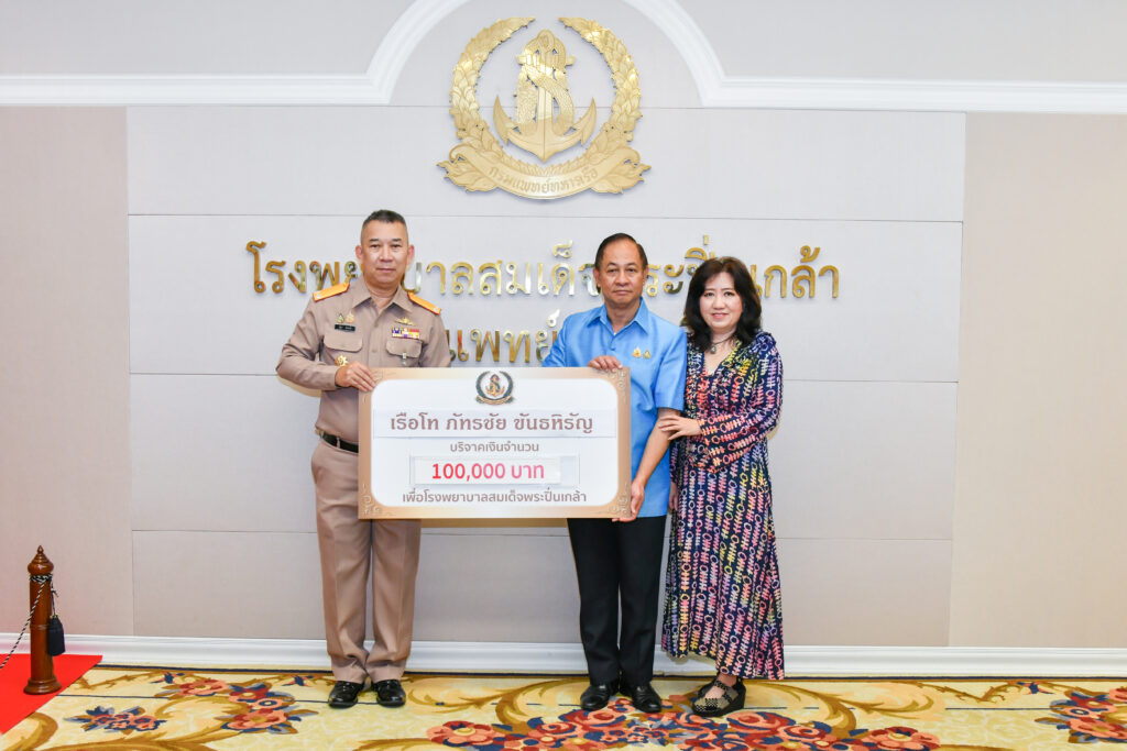 เมื่อ ๒๓ ส.ค.๖๗ ร.ท.ภัทรชัย ขันธหิรัญ มอบเงินบริจาคจำนวน ๑๐๐,๐๐๐ บาท สมทบทุนโครงการทอดผ้าป่ามหากุศล เพื่อจัดซื้อเครื่องมือแพทย์ รพ.สมเด็จพระปิ่นเกล้า พร. โดยมี พล.ร.ต.วสุธา ข่ายแก้ว ผอ.รพ.สมเด็จพระปิ่นเกล้า พร. เป็นผู้รับมอบ ณ ห้องรับรอง สนง.ผอ.รพ.สมเด็จพระปิ่นเกล้า พร.