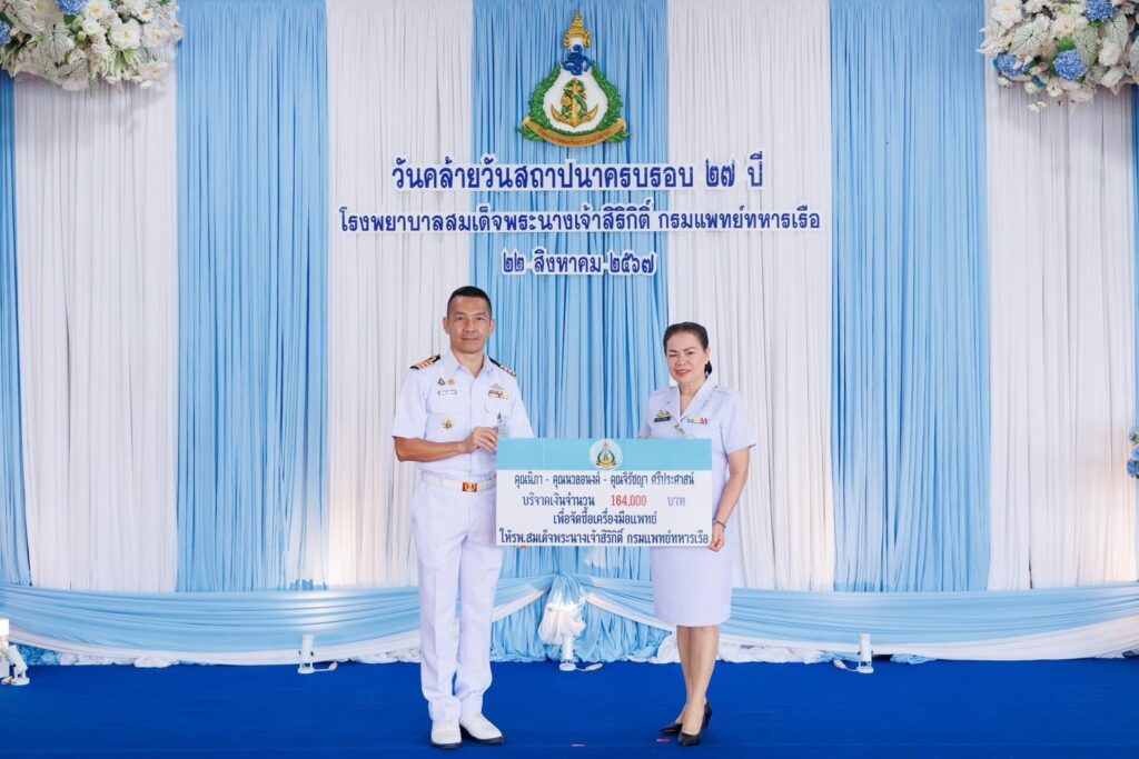 เมื่อ ๒๒ ส.ค.๖๗ คุณนิภา – คุณนวลอนงค์ – คุณจิรัชญา ศรีประศาสน์ มอบเงินบริจาคจำนวน ๑๖๔,๐๐๐ บาท เพื่อจัดซื้อเครื่องมือแพทย์ ให้ รพ.สมเด็จพระนางเจ้าสิริกิติ์ พร. โดยมี น.อ.พัฒนชัย เฉลิมวรรณ์ รอง ผอ.รพ.สมเด็จพระนางเจ้าสิริกิติ์ พร. เป็นผู้รับมอบ ณ หอประชุม รพ.สมเด็จพระนางเจ้าสิริกิติ์ พร.
