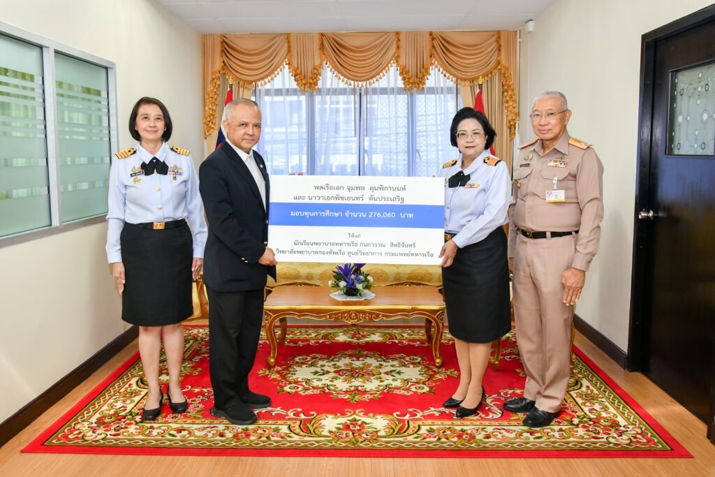 เมื่อ ๕ ก.ย.๖๗ พล.ร.อ.จุมพล ลุมพิกานนท์ และ น.อ.พิชเยนทร์ ตันประเสริฐ มอบทุนการศึกษา จำนวน ๒๗๖,๐๖๐ บาท ให้แก่นักเรียนพยาบาลทหารเรือ กนกวรรณ สิทธิจันทร์ วพร.ศวก.พร. โดยมี พล.ร.ท.ณัฐ อิศรางกูร ณ อยุธยา จก.พร. และน.อ.หญิง นวลลักขณ์ บุษบง ผอ.วพร.ศวก.พร. เป็นผู้รับมอบ ณ ห้องรับรอง บก.พร.