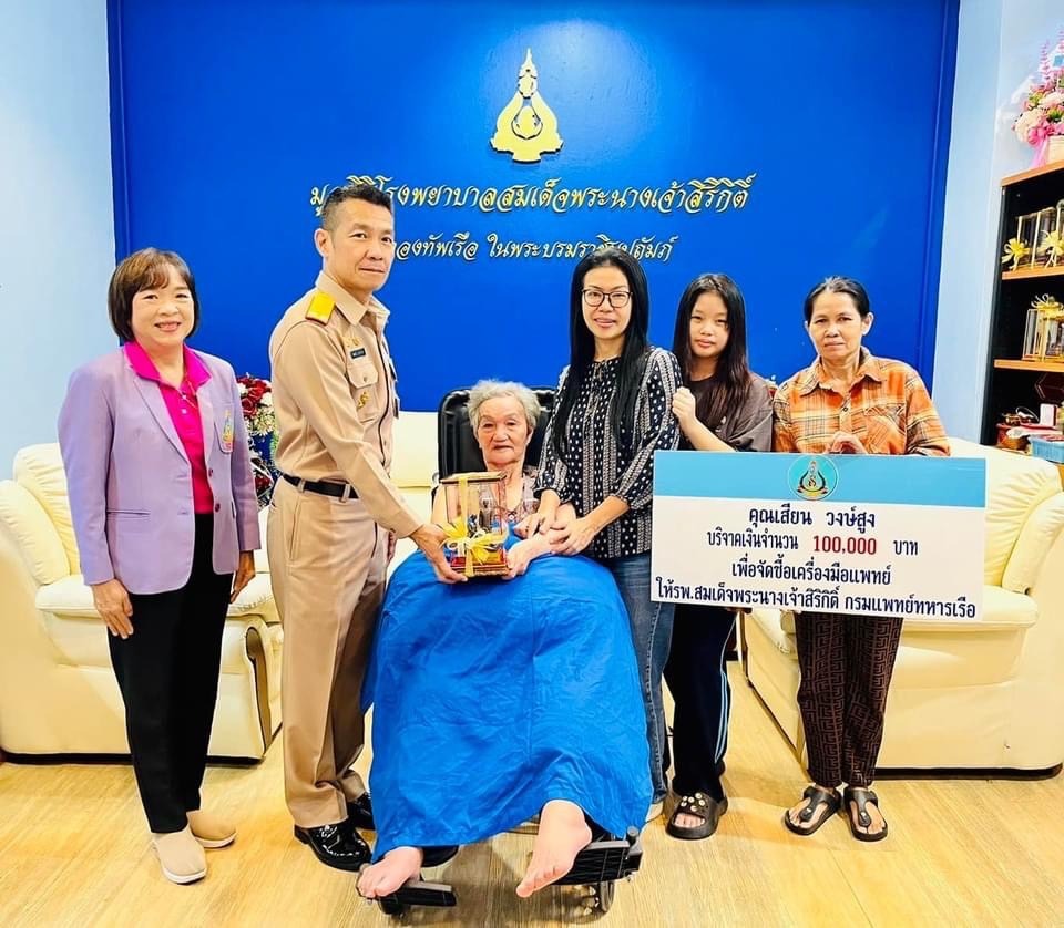 เมื่อ ๑๙ พ.ย.๖๗ คุณเสียน วงษ์สูง บริจาคเงิน จำนวน ๑๐๐,๐๐๐ บาท เพื่อจัดซื้อเครื่องมือแพทย์ ให้ รพ.สมเด็จพระนางเจ้าสิริกิติ์ พร. โดยมี พล.ร.ต.พัฒนชัย เฉลิมวรรณ์ ผอ.รพ.สมเด็จพระนางเจ้าสิริกิติ์ พร. เป็นผู้รับมอบ ณ สำนักงานมูลนิธิ รพ.สมเด็จพระนางเจ้าสิริกิติ์ พร.