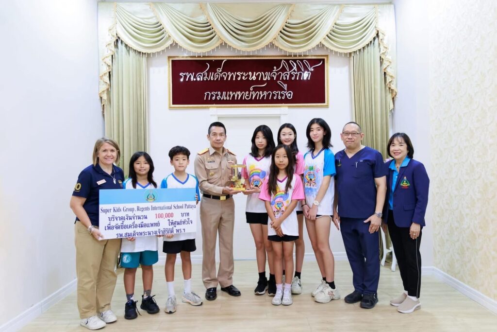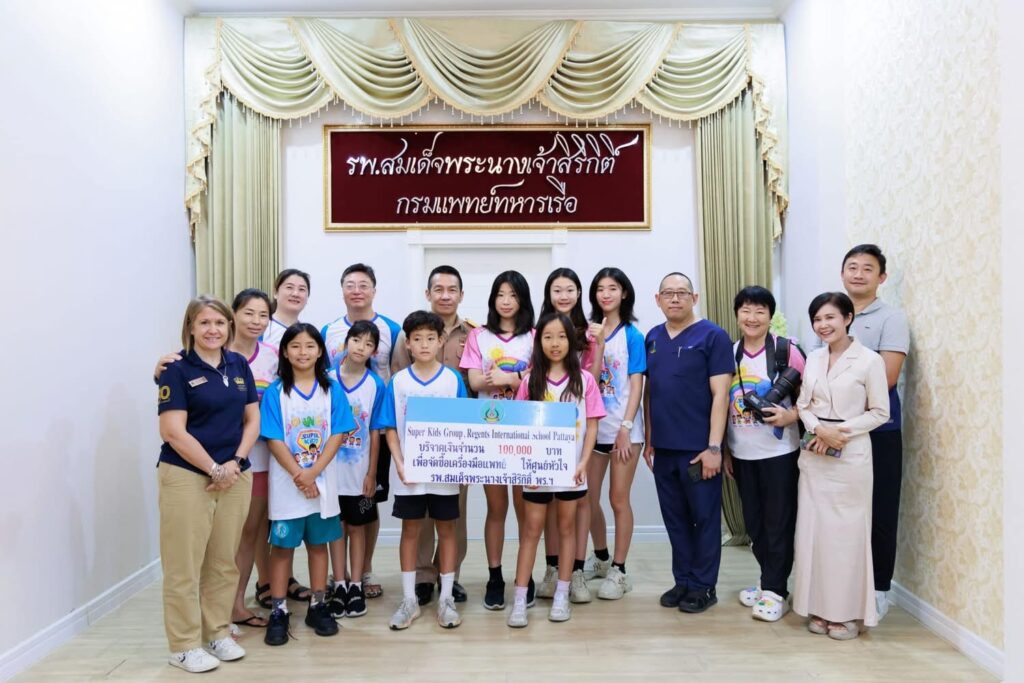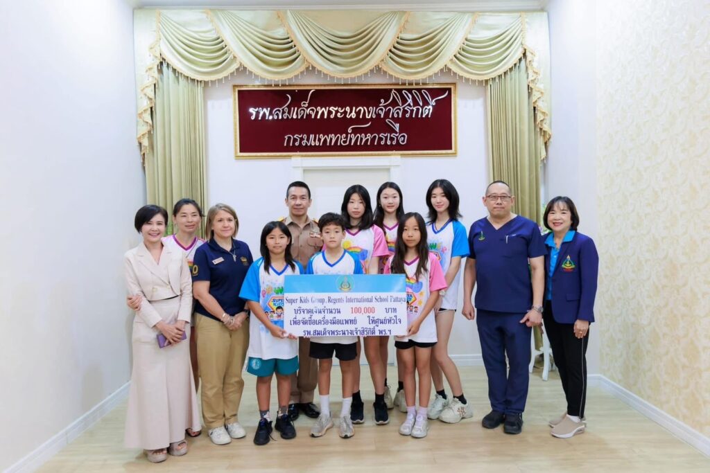 เมื่อ ๒๘ ก.พ.๖๘ Super Kids Group,Regents International School Pattaya บริจาคเงิน จำนวน ๑๐๐,๐๐๐ บาท เพื่อจัดซื้อเครื่องมือแพทย์ให้ศูนย์หัวใจ รพ.สมเด็จพระนางเจ้าสิริกิติ์ พร. โดยมี พล.ร.ต.พัฒนชัย เฉลิมวรรณ์ ผอ.รพ.สมเด็จพระนางเจ้าสิริกิติ์ พร. เป็นผู้รับมอบ ณ ห้อง ๑๙ ปี อาคารอำนวยการ รพ.สมเด็จพระนางเจ้าสิริกิติ์ พร. / ข่าวบริจาค / By ข่าวผู้บังคับบัญชา จำนวนคนดู : 11
