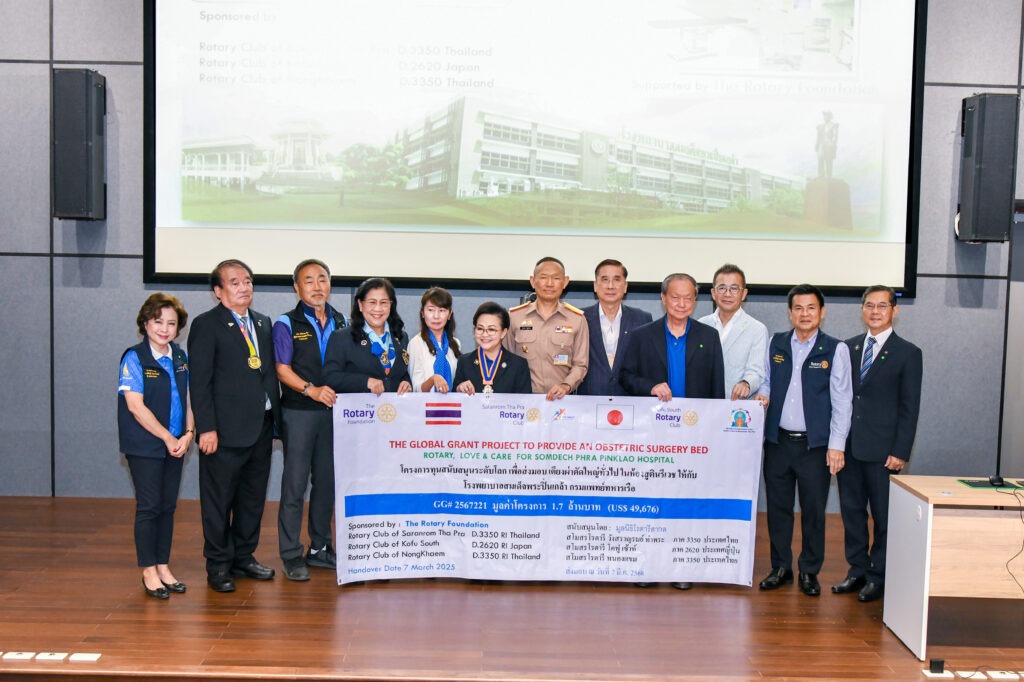 เมื่อ ๗ มี.ค.๖๘ มูลนิธิโรตารีสากล โดย สโมสรโรตารี วังสราญรมย์ ท่าพระ, สโมสรโรตารี โคฟู เซ้าท์ ประเทศญี่ปุ่น และสโมสรโรตารี หนองแขม ภายใต้โครงการทุนสนับสนุนระดับโลก ส่งมอบเตียงผ่าตัดใหญ่ทั่วไป จำนวน ๑ เตียง ให้กับห้องผ่าตัดสูตินรีเวชกรรม รพ.สมเด็จพระปิ่นเกล้า พร. โดยมี พล.ร.ต.สมชาย จันทโรธร ผอ.รพ.สมเด็จพระปิ่นเกล้า พร. น.อ.หญิง จันทราภรณ์ เคียมเส็ง รอง ผอ.รพ.ฯ ฝ่ายบริหาร และ น.อ.หญิง พิมพ์สิริ ชมะนันทน์ ผอ.ศูนย์รับบริจาค รพ.ฯ เป็นผู้รับมอบ ณ ห้องประชุมเธียเตอร์ ชั้น ๑๓ อาคารผู้ป่วยใน ๑๔ ชั้น รพ.สมเด็จพระปิ่นเกล้า พร.