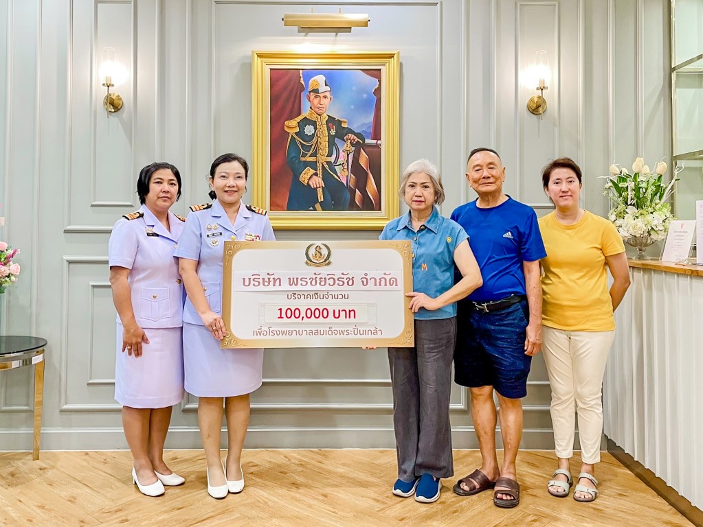 เมื่อ ๓๐ พ.ค.๖๘ บริษัท พรชัยวิรัช จำกัด มอบเงินบริจาคจำนวน ๑๐๐,๐๐๐ บาท สมทบทุนโครงการทอดผ้าป่ามหากุศล เพื่อจัดซื้อเครื่องมือแพทย์ รพ.สมเด็จพระปิ่นเกล้า โดยมี น.ท.หญิง เย็นฤดี เสตะกสิกร รอง ผอ.ศูนย์รับบริจาค รพ.ฯ และ น.ต.หญิง สรวงสุดา แนวจิตร หน.แผนกรับบริจาค รพ.ฯ เป็นผู้รับมอบ ณ สำนักงานมูลนิธิสมเด็จพระปิ่นเกล้า ชั้น ๑ อาคารพิเคราะห์และบำบัดโรค รพ.ฯ