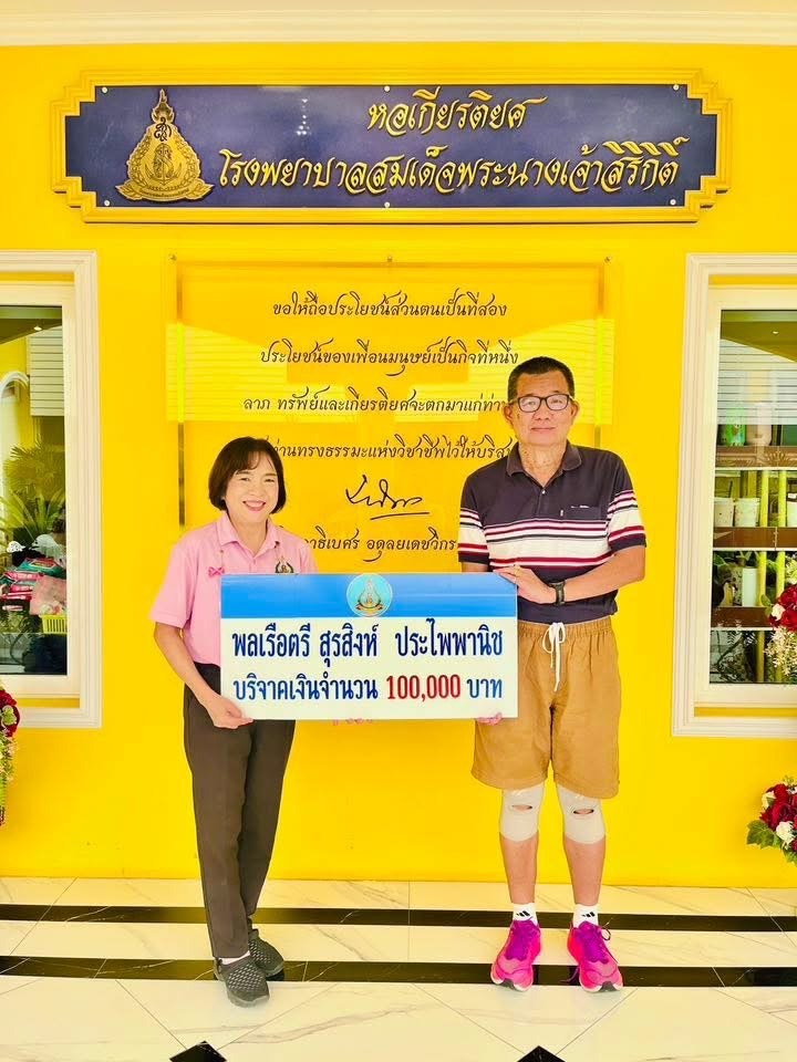 เมื่อ ๑ ก.ค.๖๘ พล.ร.ต.สุรสิงห์ ประไพพานิช บริจาคเงินจำนวน ๑๐๐,๐๐๐ บาท สมทบทุนผ้าป่าเครื่องมือแพทย์ รพ.สมเด็จพระนางเจ้าสิริกิติ์ พร. โดยมี พล.ร.ต.หญิง สุชาดา ขำวาที หน.สำนักงานมูลนิธิ รพ.สมเด็จพระนางเจ้าสิริกิติ์ ทร. ในพระบรมราชินูปถัมภ์ เป็นผู้รับมอบ ณ หอเกียรติยศ รพ.ฯ / ข่าวบริจาค / By ข่าวผู้บังคับบัญชา จำนวนคนดู : 0