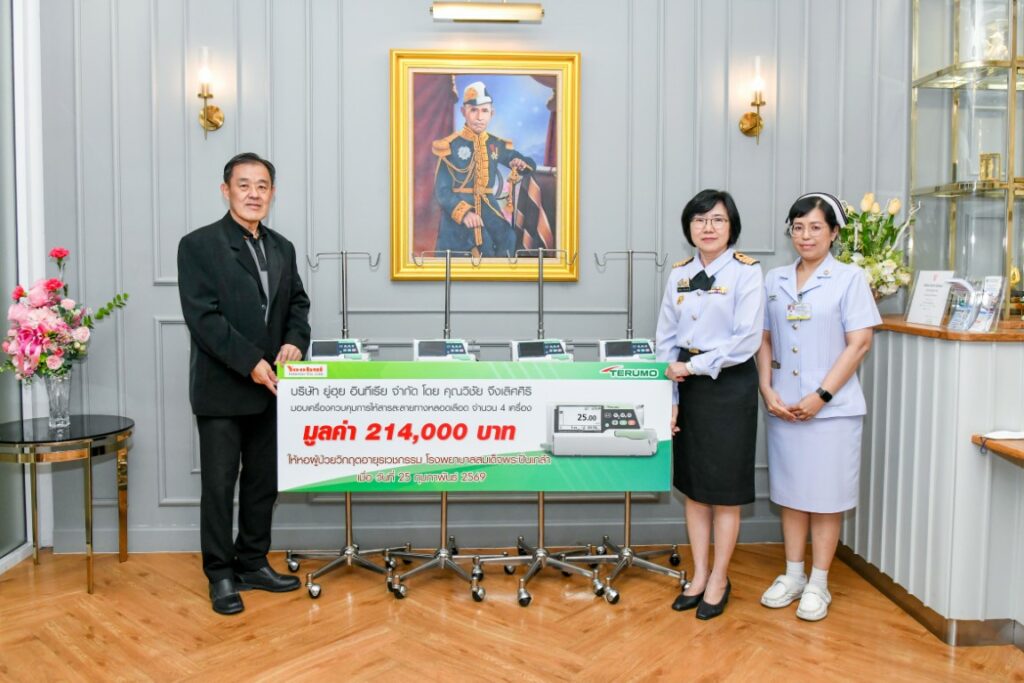 เมื่อ ๒๕ ก.พ.๖๙ บริษัท ยู่ฮุย อินทีเรีย จำกัด โดย คุณวิชัย จึงเลิศศิริ มอบเครื่องควบคุมการให้สารละลายทางหลอดเลือดดำ จำนวน ๔ เครื่อง มูลค่ารวม ๒๑๔,๐๐๐ บาท ให้หอผู้ป่วยวิกฤตอายุรเวชกรรม รพ.สมเด็จพระปิ่นเกล้า พร. โดยมี น.อ.หญิง จิรพรรณ ตันติมงคลสุข รอง ผอ.รพ.ฯ ฝ่ายการแพทย์เชิงรุกและอนามัยสิ่งแวดล้อม และ น.ท.หญิง พิมพ์พิศา เต็งประเสริฐ หัวหน้าหอผู้ป่วยวิกฤตอายุรเวชกรรม รพ.ฯ เป็นผู้รับมอบ ณ สำนักงานมูลนิธิสมเด็จพระปิ่นเกล้า ชั้น ๑ อาคารพิเคราะห์และบำบัดโรค รพ.ฯ / ข่าวบริจาค / By ข่าวผู้บังคับบัญชา จำนวนคนดู : 0