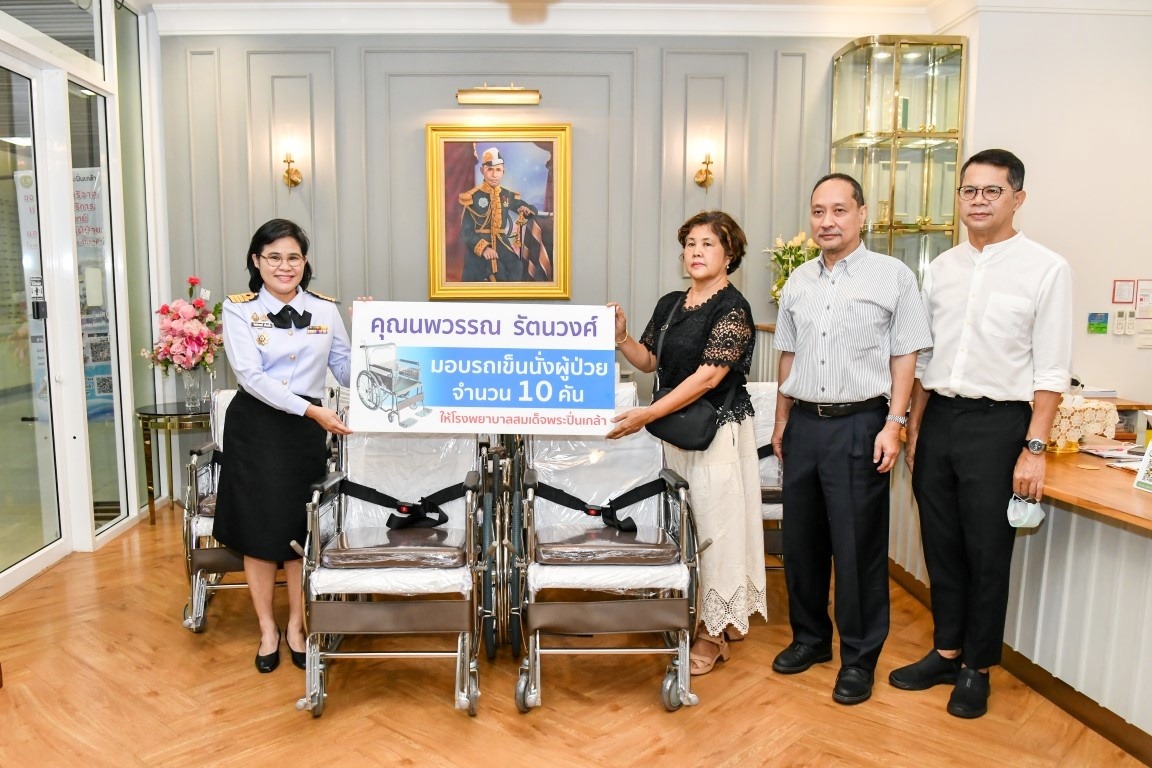 เมื่อ ๒๔ พ.ย.๖๘ คุณนพวรรณ รัตนวงศ์ มอบรถเข็นนั่งผู้ป่วยจำนวน ๑๐ คัน ให้กับ รพ.สมเด็จพระปิ่นเกล้า พร. โดยมี น.อ.หญิง จันทราภรณ์ เคียมเส็ง รอง ผอ.รพ.ฯ ฝ่ายบริหาร เป็นผู้รับมอบ ณ สำนักงานมูลนิธิสมเด็จพระปิ่นเกล้า ชั้น ๑ อาคารพิเคราะห์และบำบัดโรค รพ.ฯ