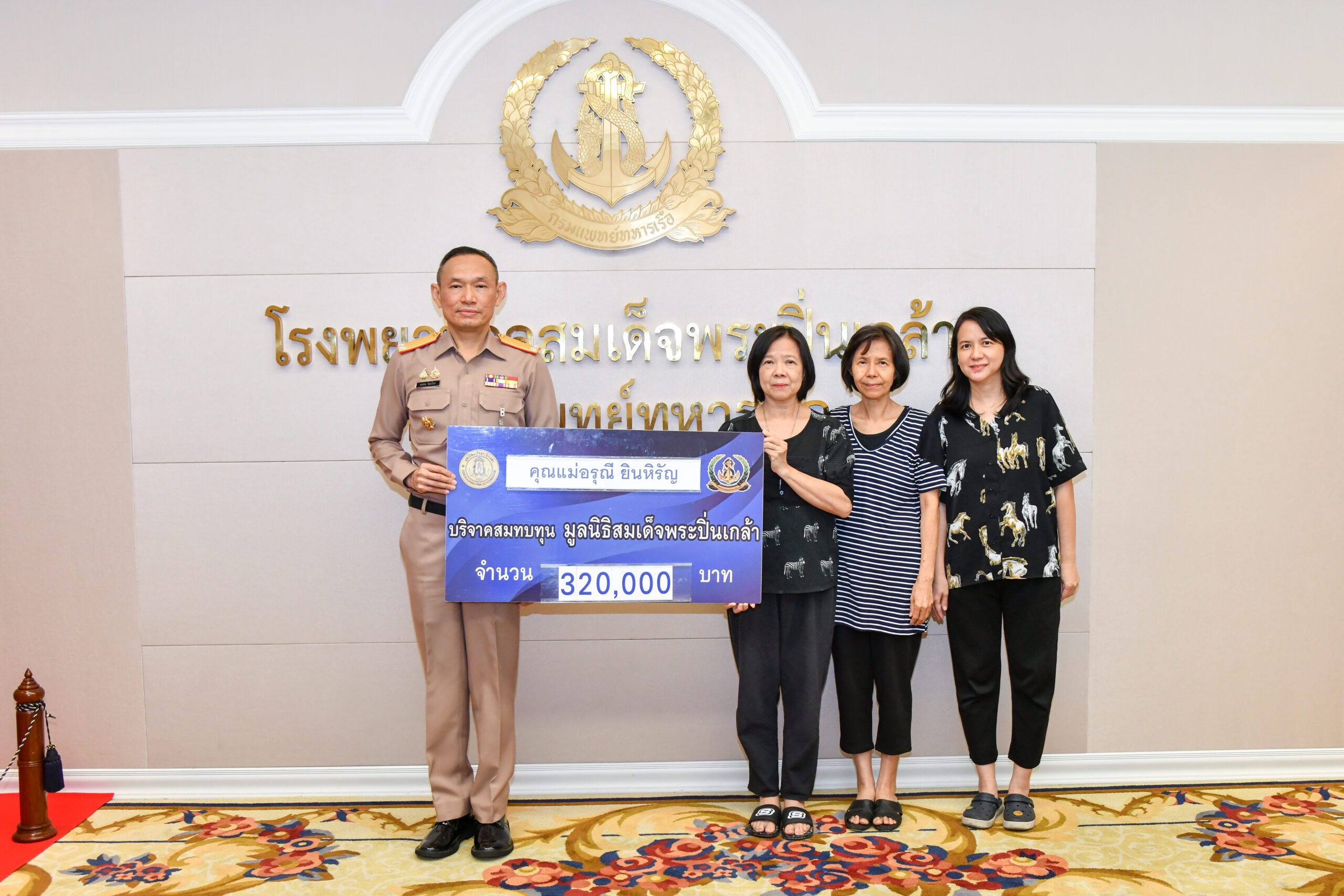 เมื่อ ๑๘ พ.ย.๖๗ คุณแม่อรุณี ยินหิรัญ มอบเงินบริจาคจำนวน ๓๒๐,๐๐๐ บาท สมทบทุนมูลนิธิสมเด็จพระปิ่นเกล้า โดยมี พล.ร.ต.สมชาย จันทโรธร ผอ.รพ.สมเด็จพระปิ่นเกล้า พร. เป็นผู้รับมอบ ณ ห้องรับรอง สนง.ผอ.รพ.สมเด็จพระปิ่นเกล้า พร. ข่าวผู้บังคับบัญชา 25 พฤศจิกายน 2567