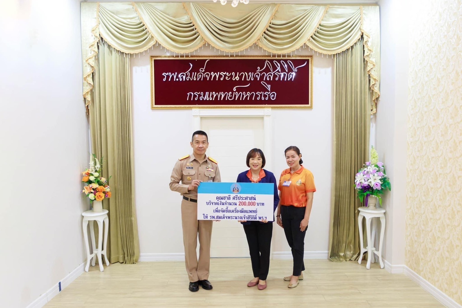 เมื่อ ๑๔ พ.ย.๖๗ คุณชาลี ศรีประศาสน์ บริจาคเงิน จำนวน ๒๐๐,๐๐๐ บาท เพื่อจัดซื้อเครื่องมือแพทย์ ให้ รพ.สมเด็จพระนางเจ้าสิริกิติ์ พร. โดยมี พล.ร.ต.พัฒนชัย เฉลิมวรรณ์ ผอ.รพ.สมเด็จพระนางเจ้าสิริกิติ์ พร. เป็นผู้รับมอบ ณ ห้อง ๑๙ ปี อาคารอำนวยการ ชั้น ๒ รพ.สมเด็จพระนางเจ้าสิริกิติ์ พร. ข่าวผู้บังคับบัญชา 27 พฤศจิกายน 2567