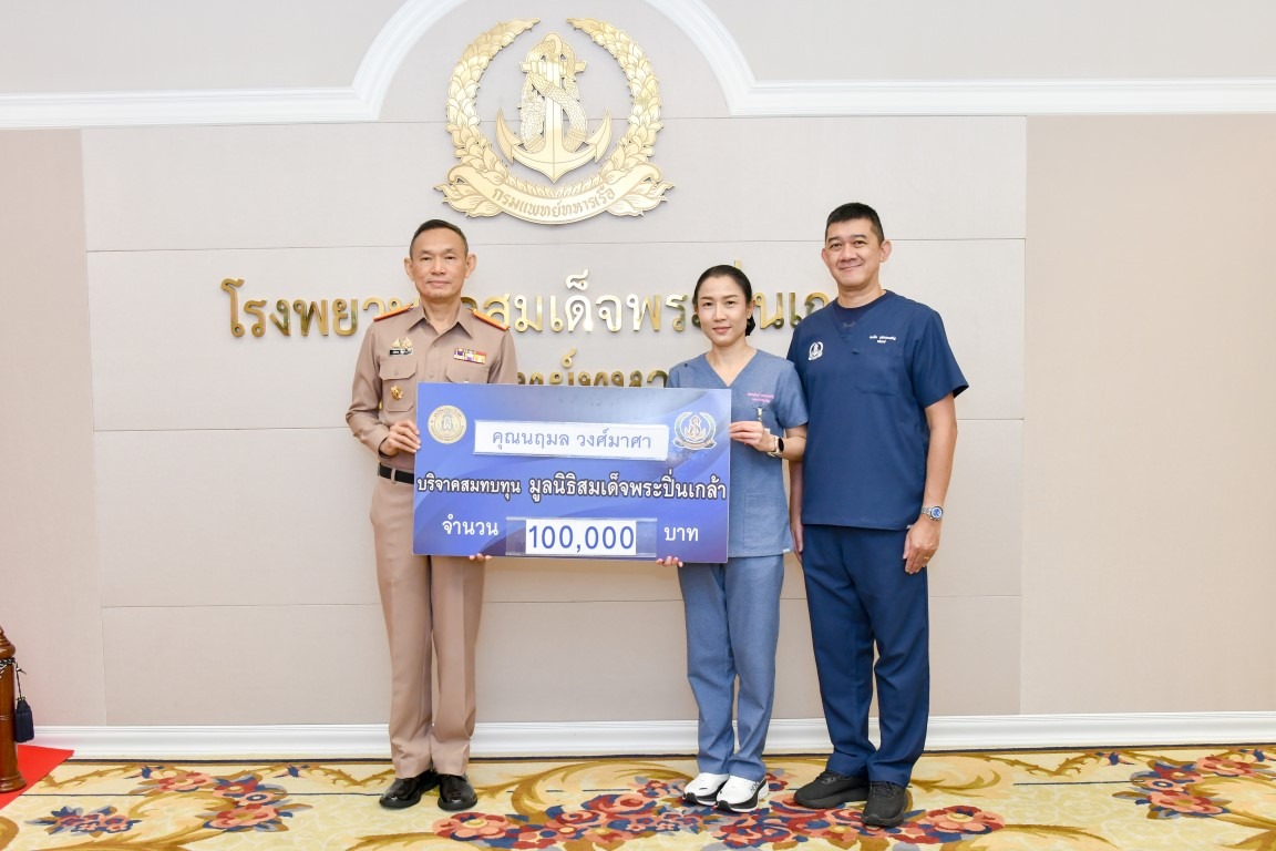 เมื่อ ๒๘ ต.ค.๖๗ คุณสุพรรัตน์ ฉัตร์ทิพานนท์ มอบเงินบริจาคจำนวน ๑๐๐,๐๐๐ บาท สมทบทุนมูลนิธิสมเด็จพระปิ่นเกล้า โดยมี พล.ร.ต.สมชาย จันทโรธร ผอ.รพ.สมเด็จพระปิ่นเกล้า พร. เป็นผู้รับมอบ ณ ห้องรับรอง สนง.ผอ.รพ.สมเด็จพระปิ่นเกล้า พร. ข่าวผู้บังคับบัญชา 30 ตุลาคม 2567