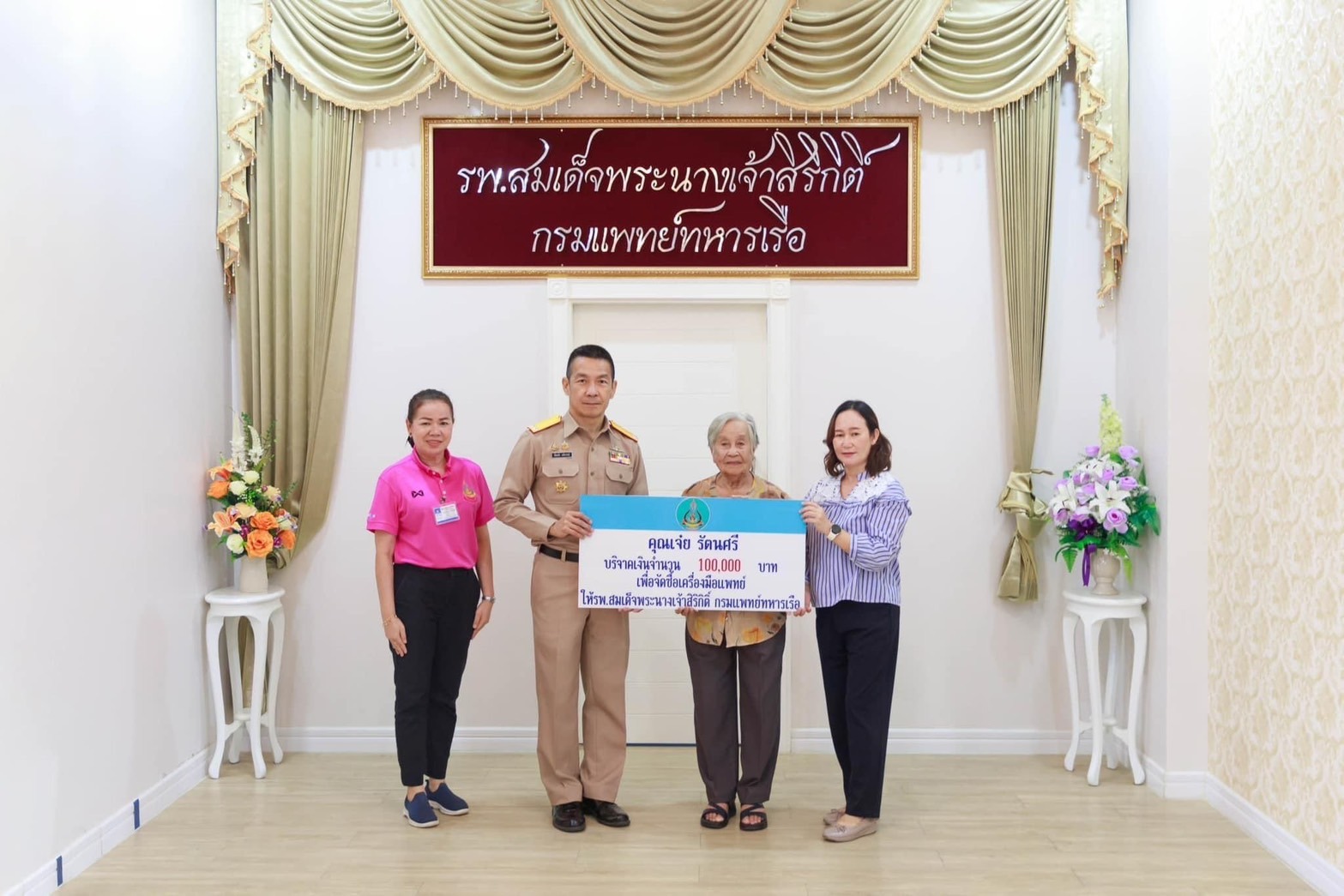 เมื่อ ๘ ต.ค.๖๗ คุณเจ๋ย รัตนศรี บริจาคเงินจำนวน ๑๐๐,๐๐๐ บาท เพื่อจัดซื้อเครื่องมือแพทย์ ให้ รพ.สมเด็จพระนางเจ้าสิริกิติ์ พร. โดยมี พล.ร.ต.พัฒนชัย เฉลิมวรรณ์ ผอ.รพ.สมเด็จพระนางเจ้าสิริกิติ์ พร. เป็นผู้รับมอบ ณ ห้อง ๑๙ ปี อาคารอำนวยการ ชั้น ๒ รพ.สมเด็จพระนางเจ้าสิริกิติ์ พร. ข่าวผู้บังคับบัญชา 10 ตุลาคม 2567