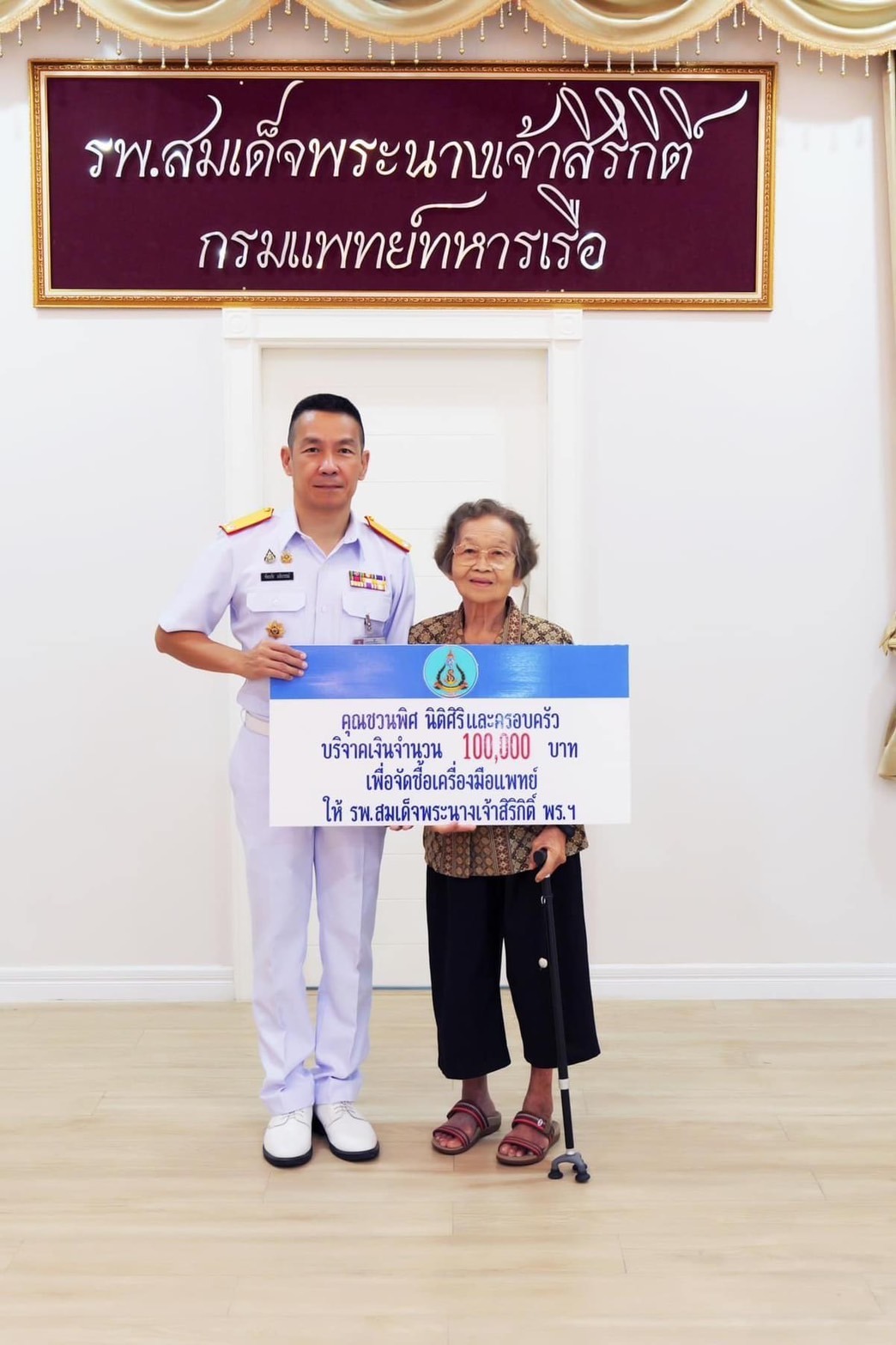 เมื่อ ๑๑ ต.ค.๖๗ คุณชวนพิศ นิติศิริ และครอบครัว บริจาคเงินจำนวน ๑๐๐,๐๐๐ บาท เพื่อจัดซื้อเครื่องมือแพทย์ ให้ รพ.สมเด็จพระนางเจ้าสิริกิติ์ พร. โดยมี พล.ร.ต.พัฒนชัย เฉลิมวรรณ์ ผอ.รพ.สมเด็จพระนางเจ้าสิริกิติ์ พร. เป็นผู้รับมอบ ณ ห้อง ๑๙ ปี อาคารอำนวยการ ชั้น ๒ รพ.สมเด็จพระนางเจ้าสิริกิติ์ พร. ข่าวผู้บังคับบัญชา 21 ตุลาคม 2567