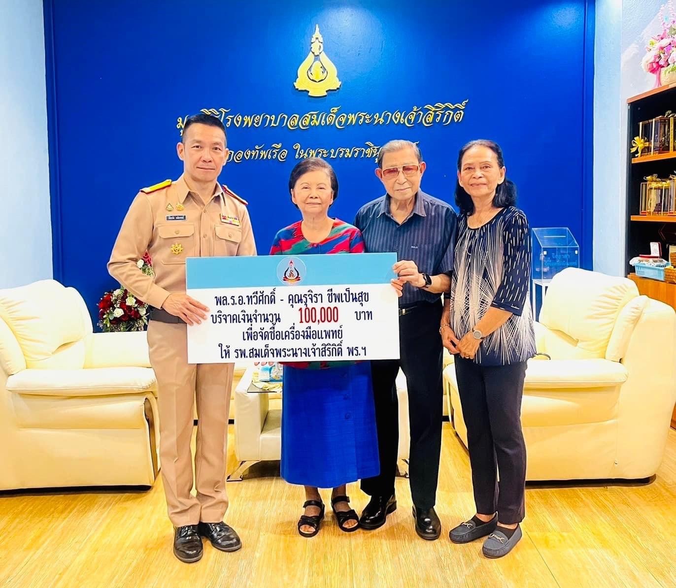เมื่อ ๑๖ ต.ค.๖๗ พล.ร.อ.ทวีศักดิ์ – คุณรุจิรา ชีพเป็นสุข บริจาคเงินจำนวน ๑๐๐,๐๐๐ บาท เพื่อจัดซื้อเครื่องมือแพทย์ ให้ รพ.สมเด็จพระนางเจ้าสิริกิติ์ พร. โดยมี พล.ร.ต.พัฒนชัย เฉลิมวรรณ์ ผอ.รพ.สมเด็จพระนางเจ้าสิริกิติ์ พร. เป็นผู้รับมอบ ณ สนง.มูลนิธิ รพ.สมเด็จพระนางเจ้าสิริกิติ์ พร. ข่าวผู้บังคับบัญชา 21 ตุลาคม 2567
