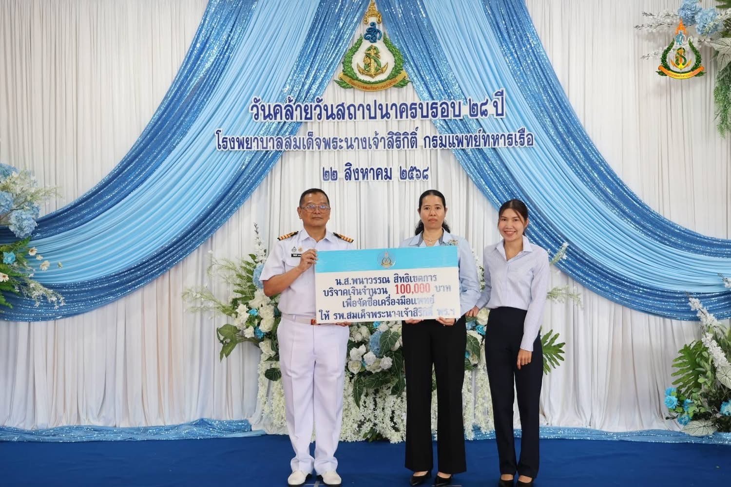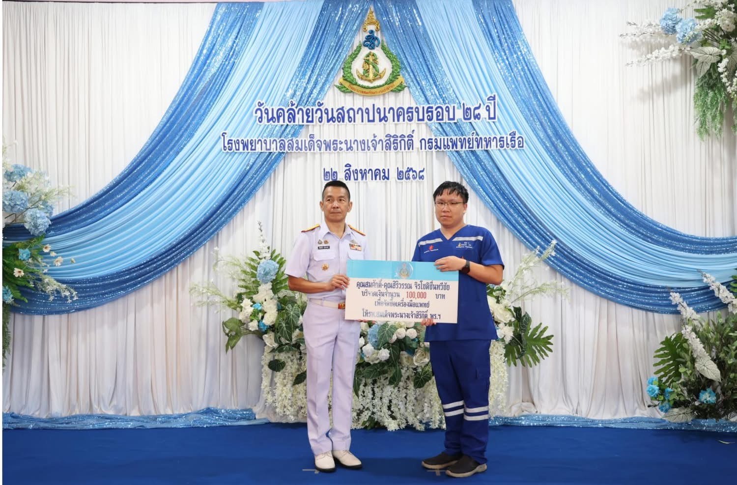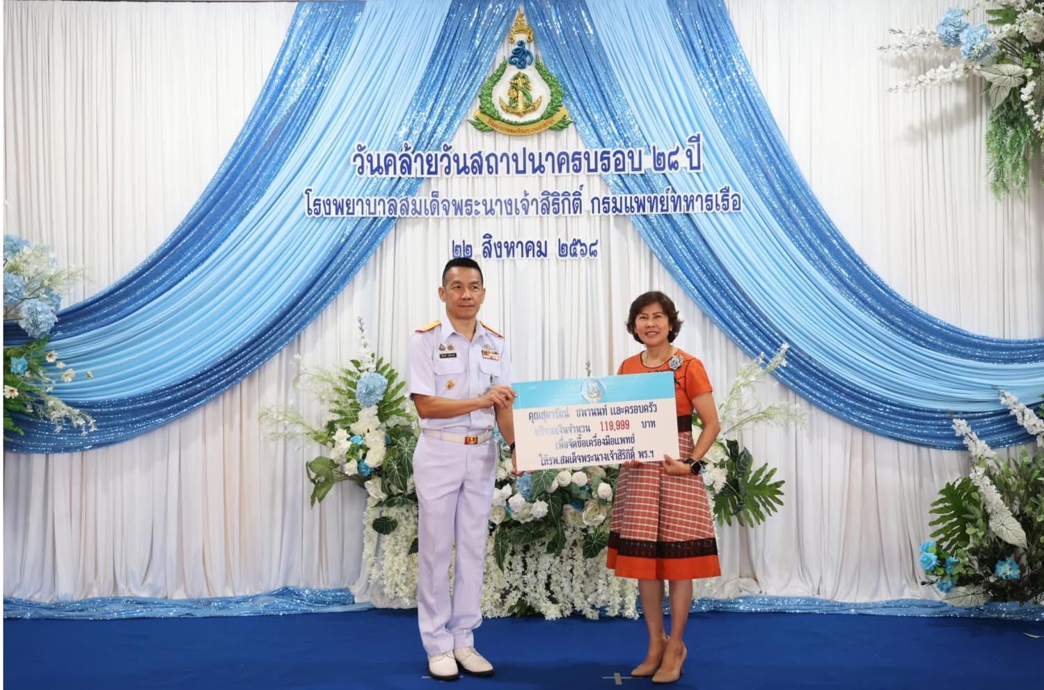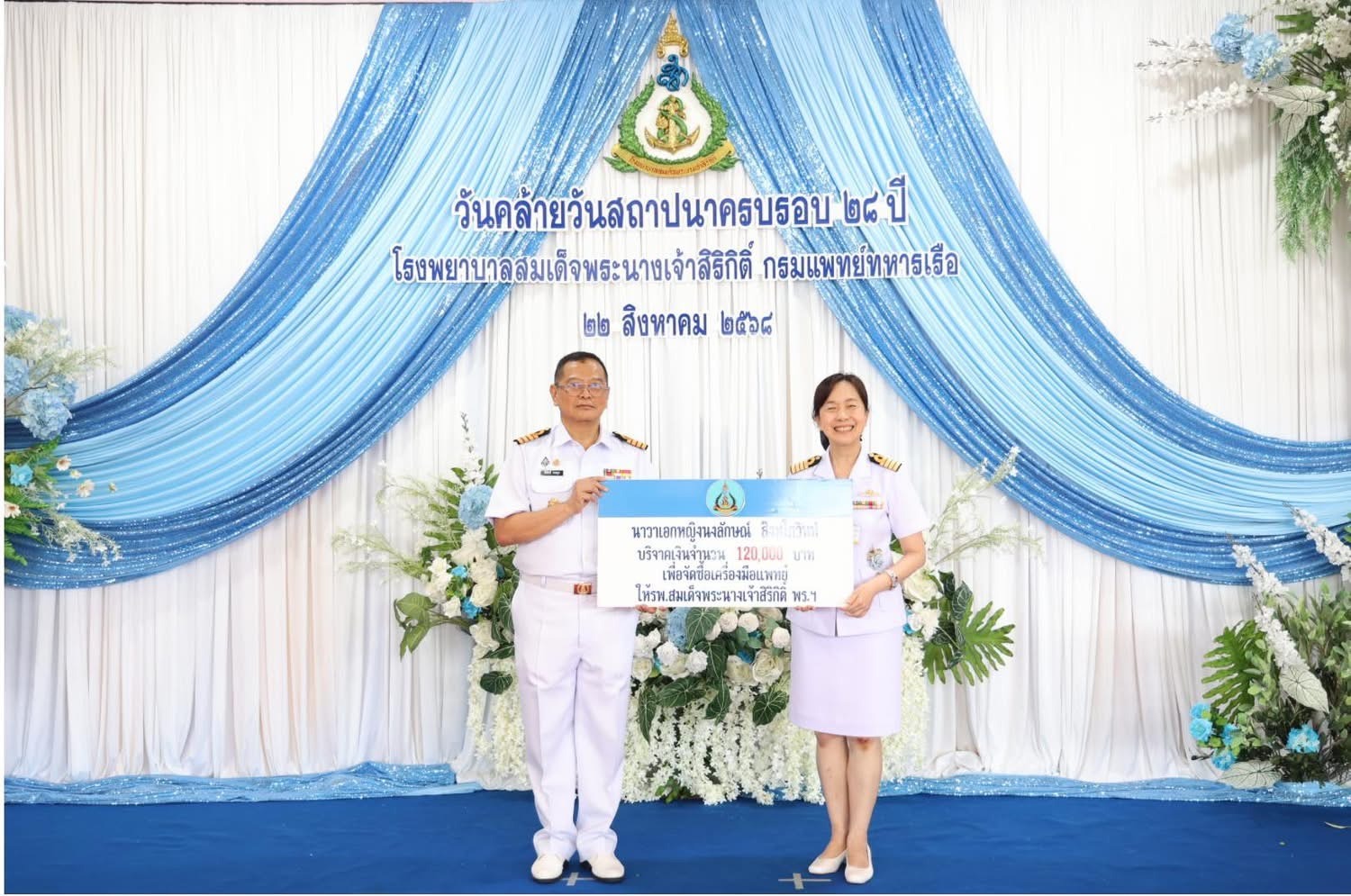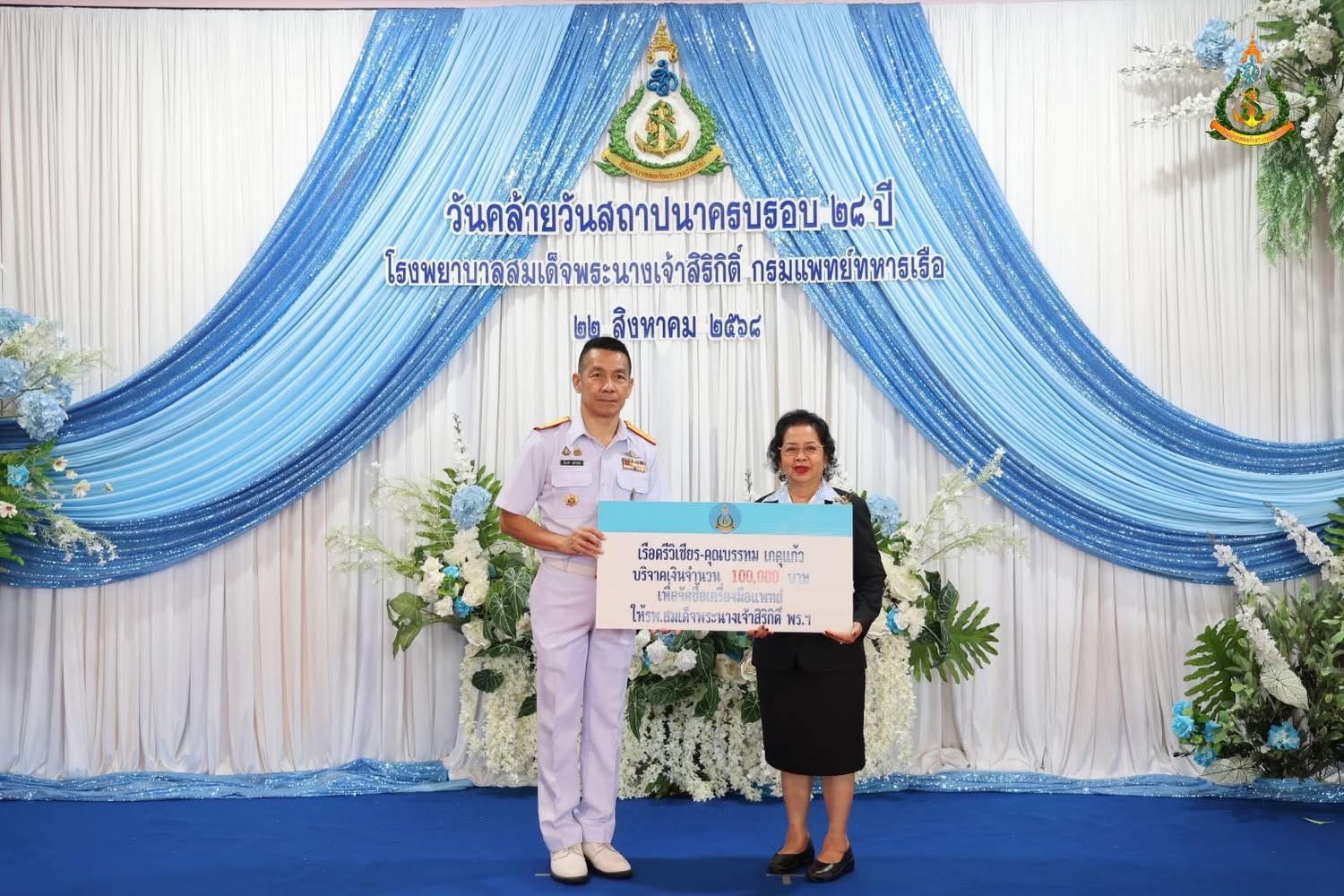 เมื่อ ๒๒ ส.ค.๖๘ คุณสมศักดิ์ คุณสิริวรรณ จิรโชติชื่นทวีชัย บริจาคเงิน จำนวน ๑๐๐,๐๐๐ บาท เพื่อจัดซื้อเครื่องมือแพทย์ ให้แก่ รพ.สมเด็จพระนางเจ้าสิริกิติ์ พร. โดยมี พล.ร.ต.พัฒนชัย เฉลิมวรรณ์ ผอ.รพ.สมเด็จพระนางเจ้าสิริกิติ์ พร. เป็นผู้รับมอบ ณ หอประชุม รพ.ฯ ข่าวผู้บังคับบัญชา 26 สิงหาคม 2568