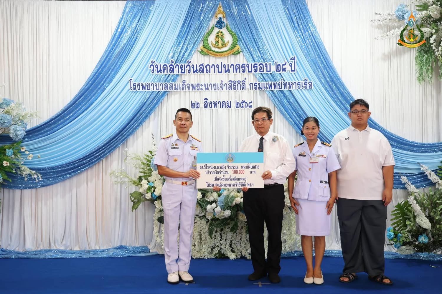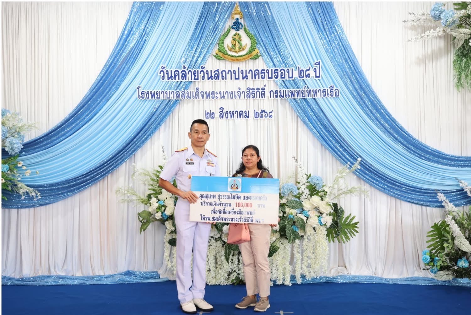 เมื่อ ๒๒ ส.ค.๖๘ คุณสุเทพ สุวรรณโฆษิตและครอบครัว บริจาคเงิน จำนวน ๑๐๐,๐๐๐ บาท เพื่อจัดซื้อเครื่องมือแพทย์ ให้แก่ รพ.สมเด็จพระนางเจ้าสิริกิติ์ พร. โดยมี พล.ร.ต.พัฒนชัย เฉลิมวรรณ์ ผอ.รพ.สมเด็จพระนางเจ้าสิริกิติ์ พร. เป็นผู้รับมอบ ณ หอประชุม รพ.ฯ ข่าวผู้บังคับบัญชา 26 สิงหาคม 2568